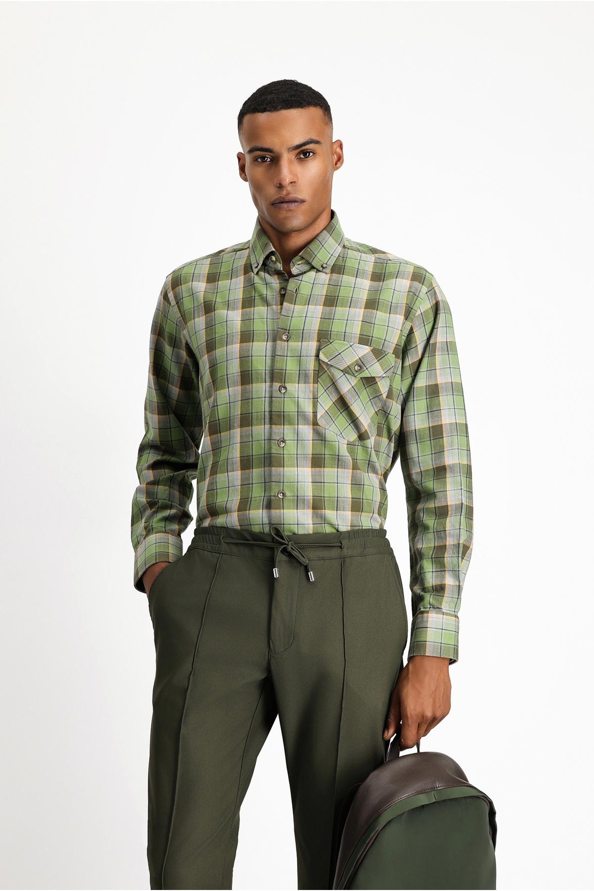 Uzun Kol Regular Fit Ekose Spor Pamuk Düğmeli Yaka Gömlek Uzun Kol Regular Fit Ekose Spor Pamuk Düğmeli Yaka Gömlek KK2543C0EK002 7XL