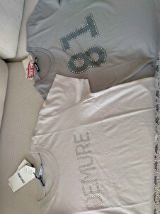 DEMURA Kadın Regular Taşlı Yuvarlak Yaka Açık Gri T-Shirt DEMURA Kadın Regular Taşlı Yuvarlak Yaka Açık Gri T-Shirt DEMURA01082024 XL
