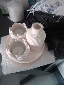 Dekoratif Lotus mumluk vazo ve tabak seti - mum dahil Dekoratif Lotus mumluk vazo ve tabak seti - mum dahil bf00053 تک سایز