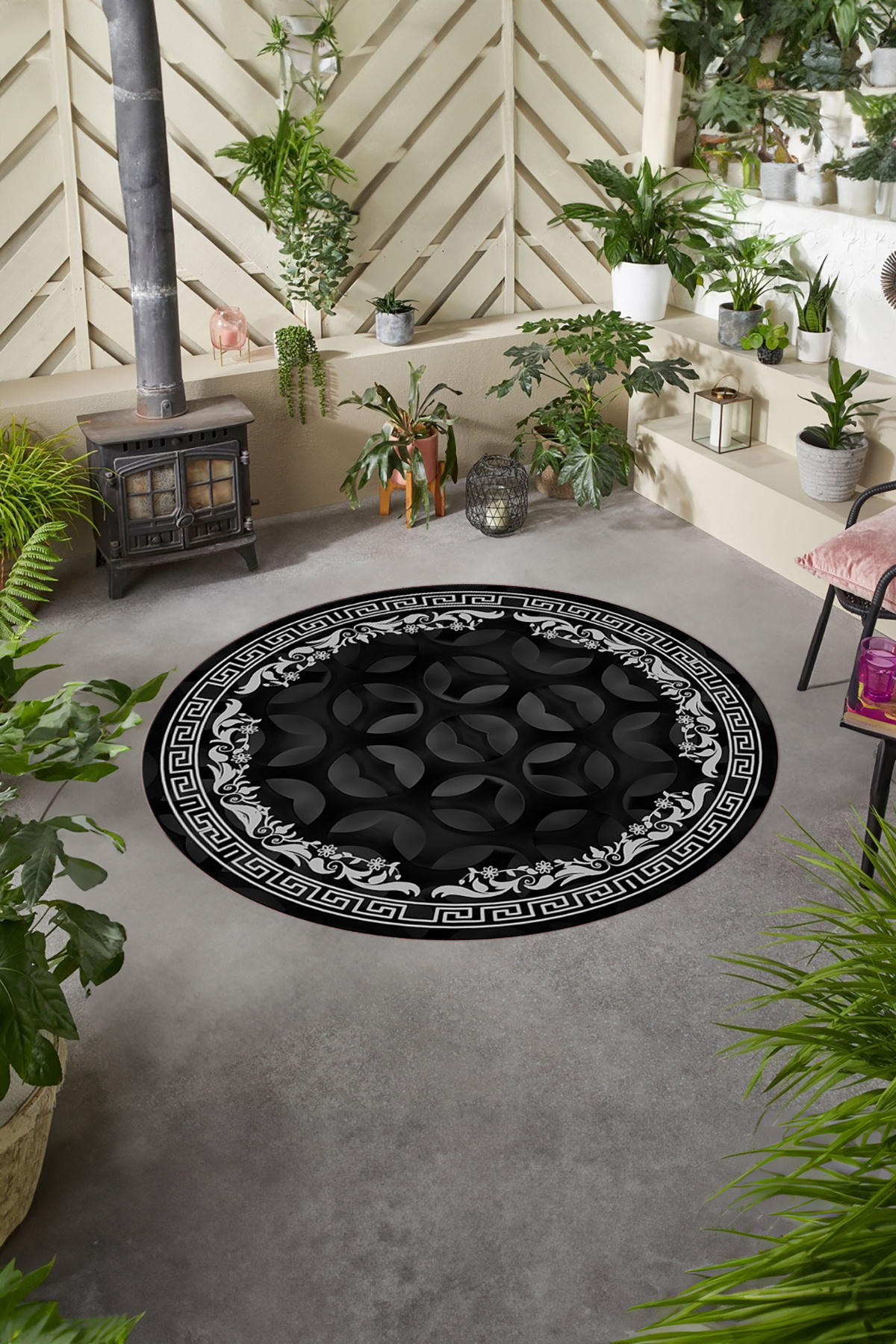 Çerçeveli Geleneksel Desen Yıkanabilir Kaymaz Taban Yuvarlak Salon Halısı Çerçeveli Geleneksel Desen Yıkanabilir Kaymaz Taban Yuvarlak Salon Halısı ÇERÇEVELİ-Y-107 180 x 180