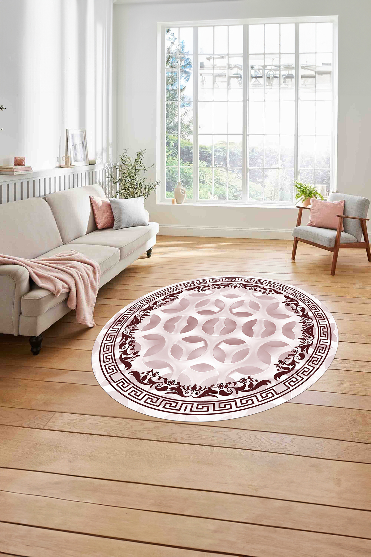 Çerçeveli Geleneksel Desen Yıkanabilir Kaymaz Taban Yuvarlak Salon Halısı Çerçeveli Geleneksel Desen Yıkanabilir Kaymaz Taban Yuvarlak Salon Halısı ÇERÇEVELİ-Y-107 180 x 180