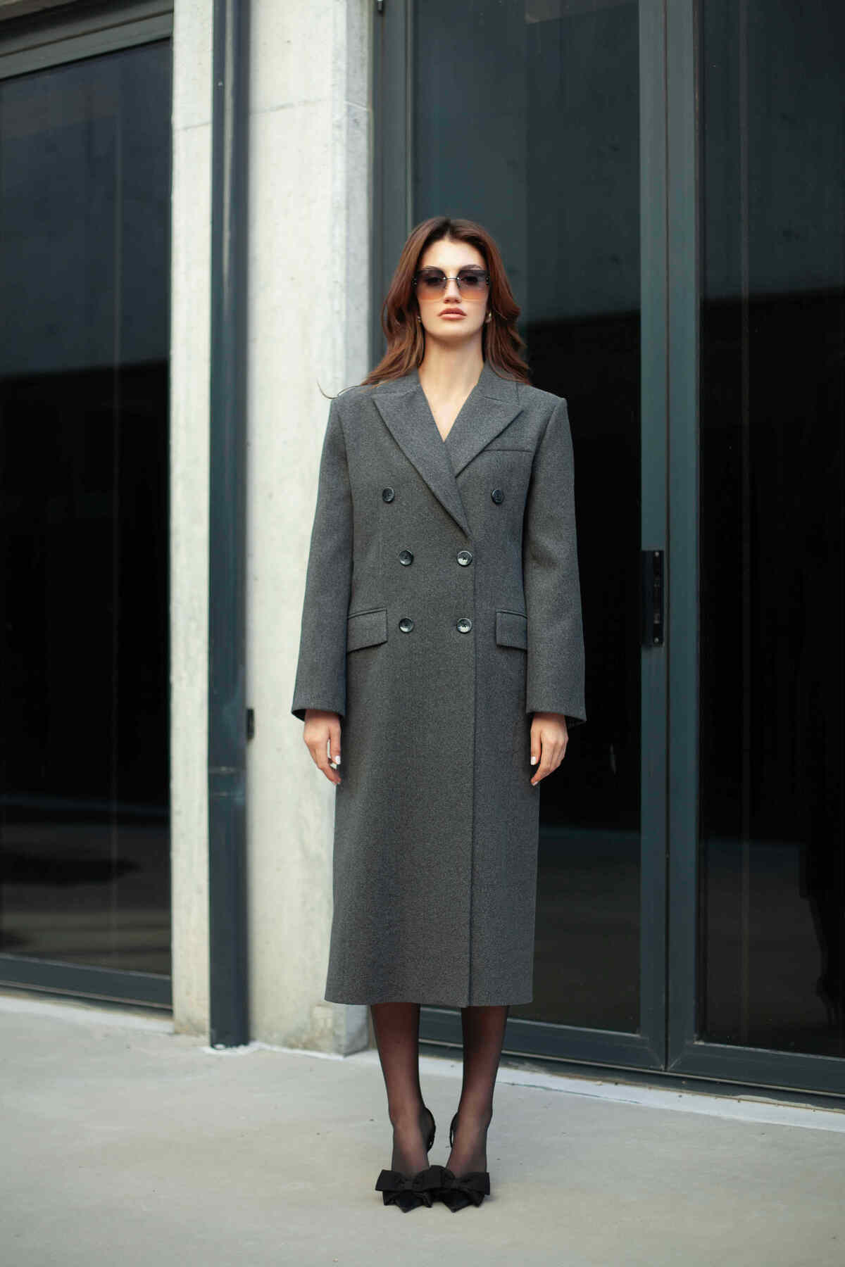 Uzun Yün Kaban Antrasit Gri Oversize Kesim Astarlı Uzun Yün Kaban Antrasit Gri Oversize Kesim Astarlı ND241204788197 XL