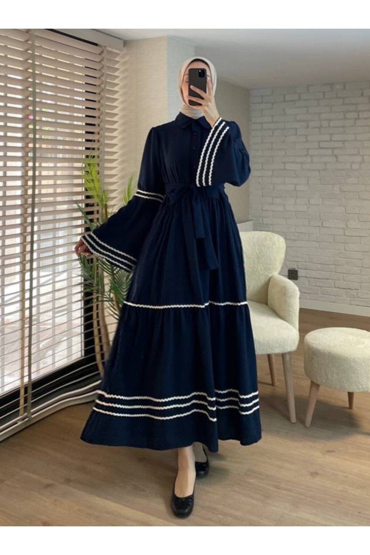 Bel Kuşaklı Kat Detay Elbise 6029 Ekru Bel Kuşaklı Kat Detay Elbise 6029 Ekru 48