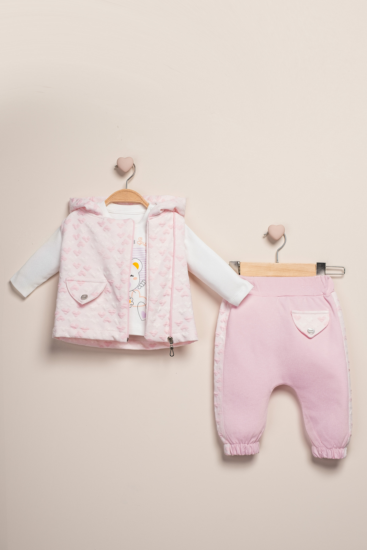 Yelekli Kalp Desen 3'Lü Takım Yelekli Kalp Desen 3'Lü Takım 1443 18-24 AY
