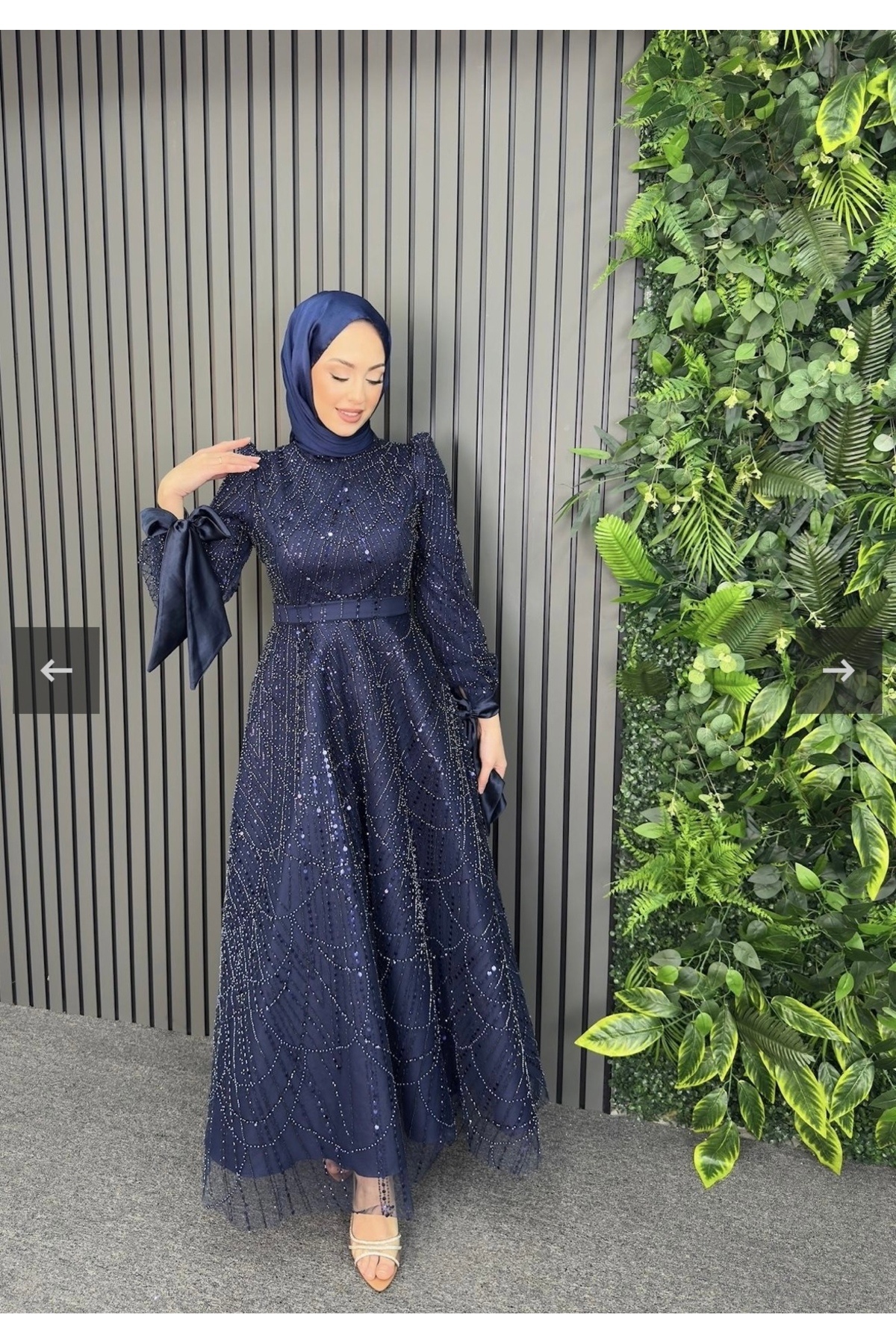 Üç Boyutlu Gül Detaylı Saten Kadın Tesettür Abiye Elbise Üç Boyutlu Gül Detaylı Saten Kadın Tesettür Abiye Elbise plmstnaby 42