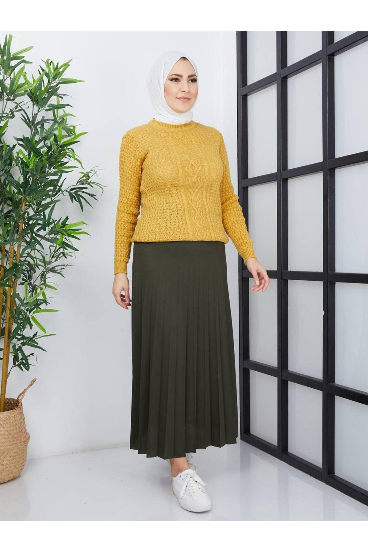 Desenli Triko Kazak Sarı Desenli Triko Kazak Sarı ALL2120 Standart