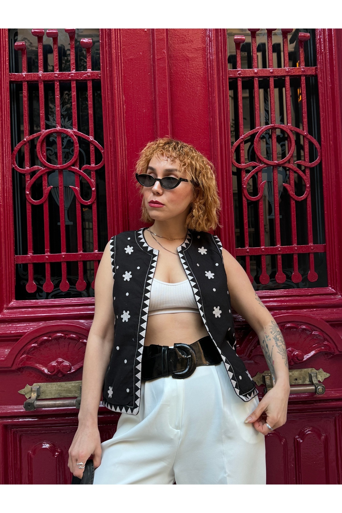 Astarlı Nakışlı Etnik Desenli Keten Yelek Astarlı Nakışlı Etnik Desenli Keten Yelek L