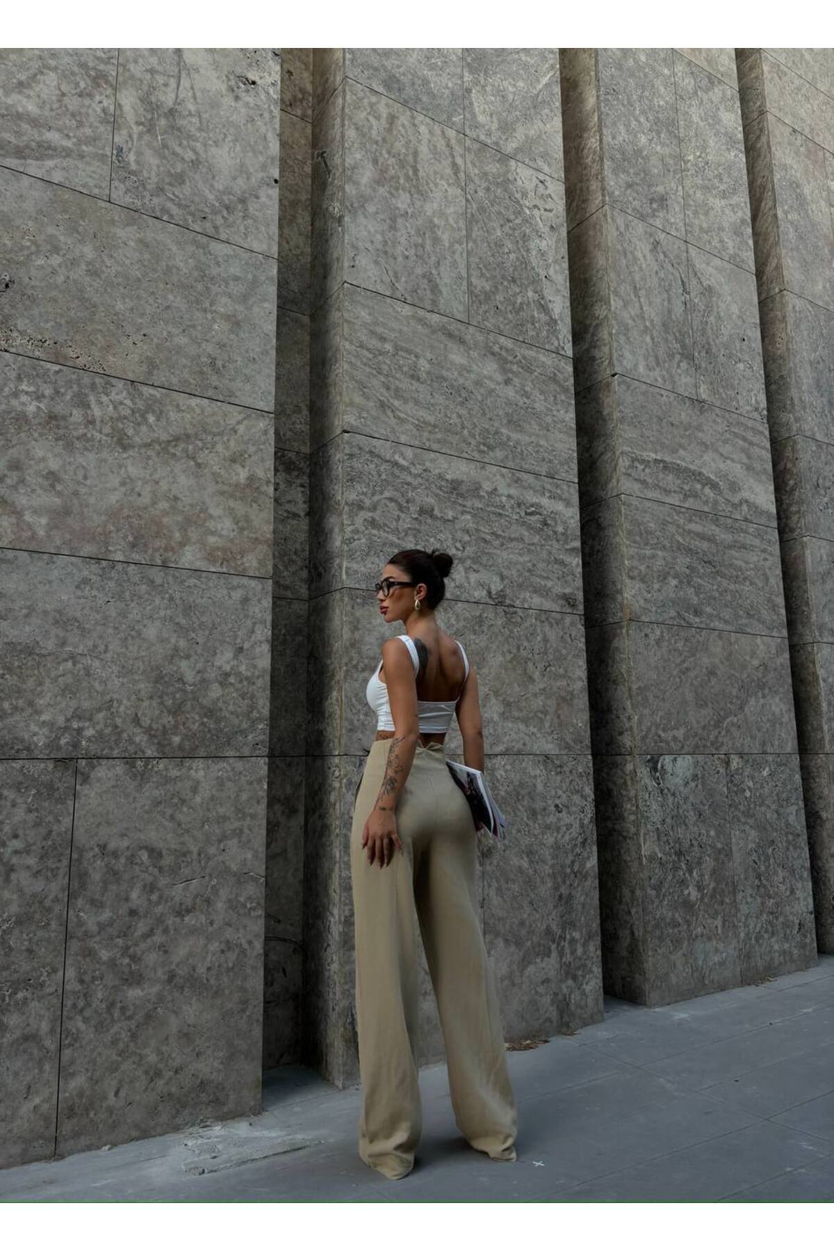 Kadın Yüksek Bel Keten Palazzo Pantolon Kadın Yüksek Bel Keten Palazzo Pantolon Laluna1032KPV L
