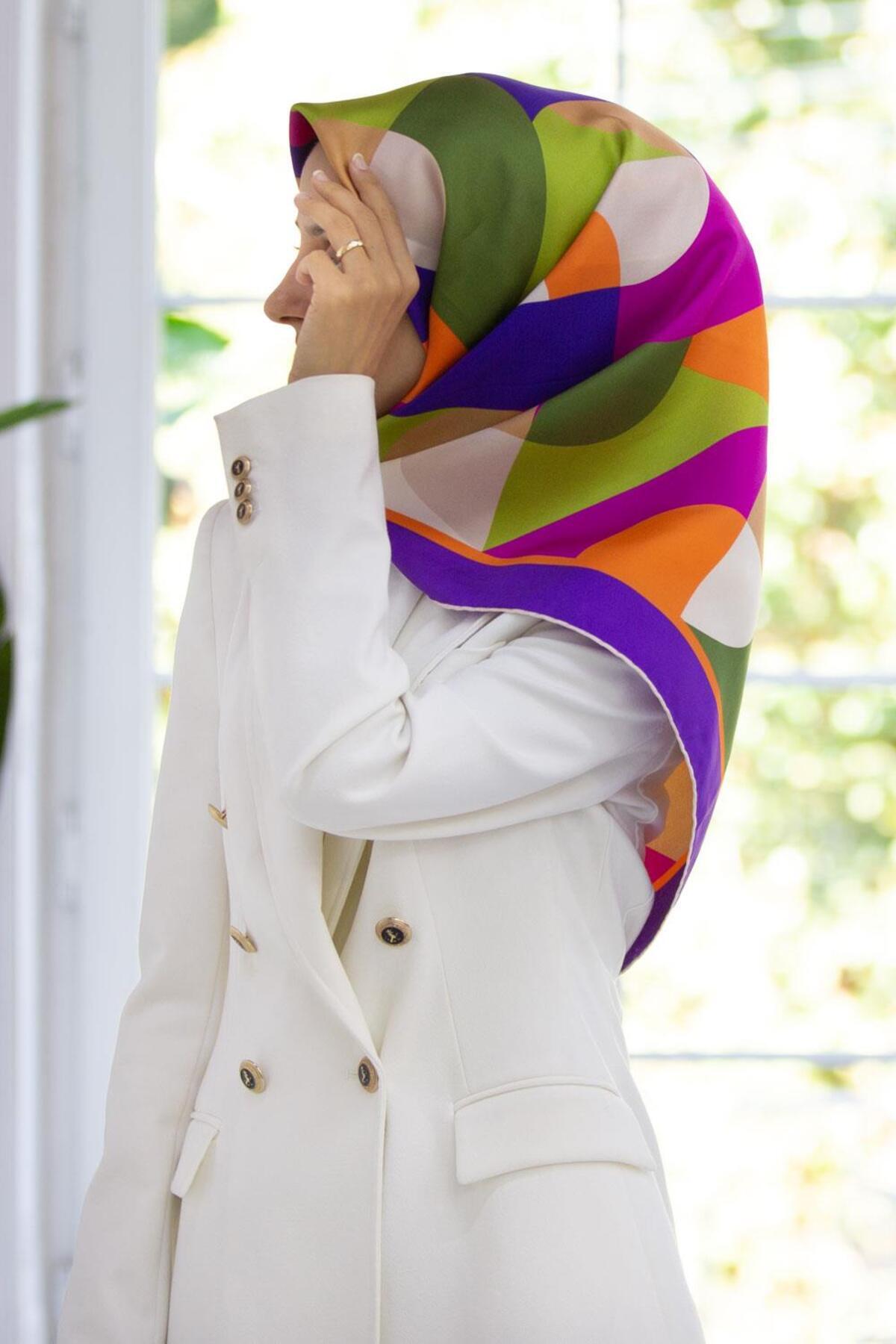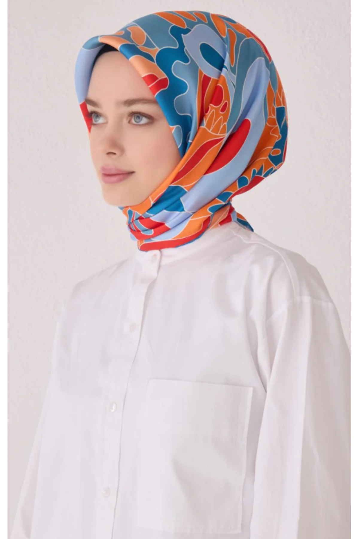 %100 Twill İpek Geometrik Desenli Saks Renkli 90x90 Eşarp Dikim Şekli : El Dikişi %100 Twill İpek Geometrik Desenli Saks Renkli 90x90 Eşarp Dikim Şekli : El Dikişi 60301-16 90x90