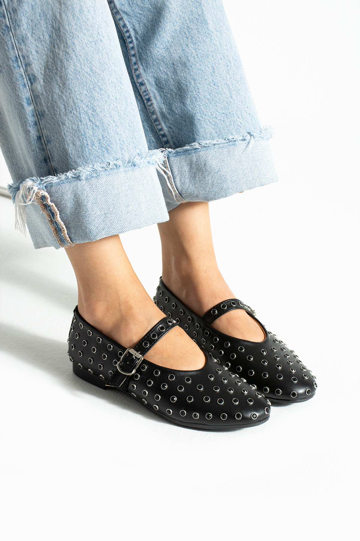 Flore Cilt Delikli trok detaylı düz taban günlük kadın babet Flore Cilt Delikli trok detaylı düz taban günlük kadın babet NB-B43 40