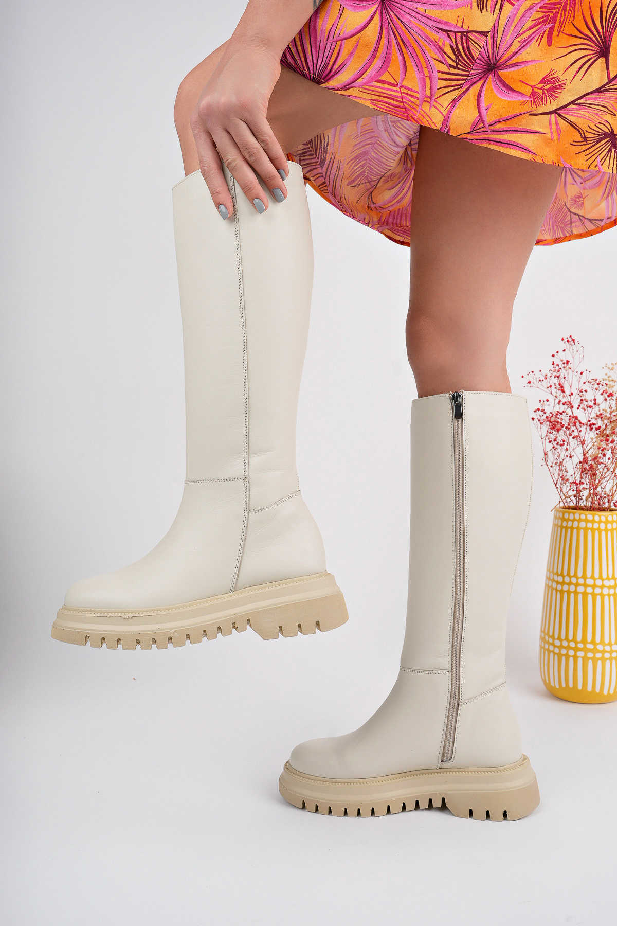 Bej Hakiki Deri Kadın Çizme Bej Hakiki Deri Kadın Çizme GRD2025SK06 40