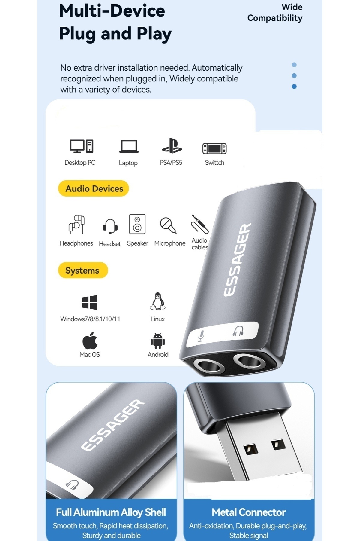 Type-C To 3.5mm Harici Ses Kartı Çift Giriş CE/FC/ROHS Lisanslı Mikrofon/Kulaklık/Hoparlör Ses Type-C To 3.5mm Harici Ses Kartı Çift Giriş CE/FC/ROHS Lisanslı Mikrofon/Kulaklık/Hoparlör Ses Orj تک سایز