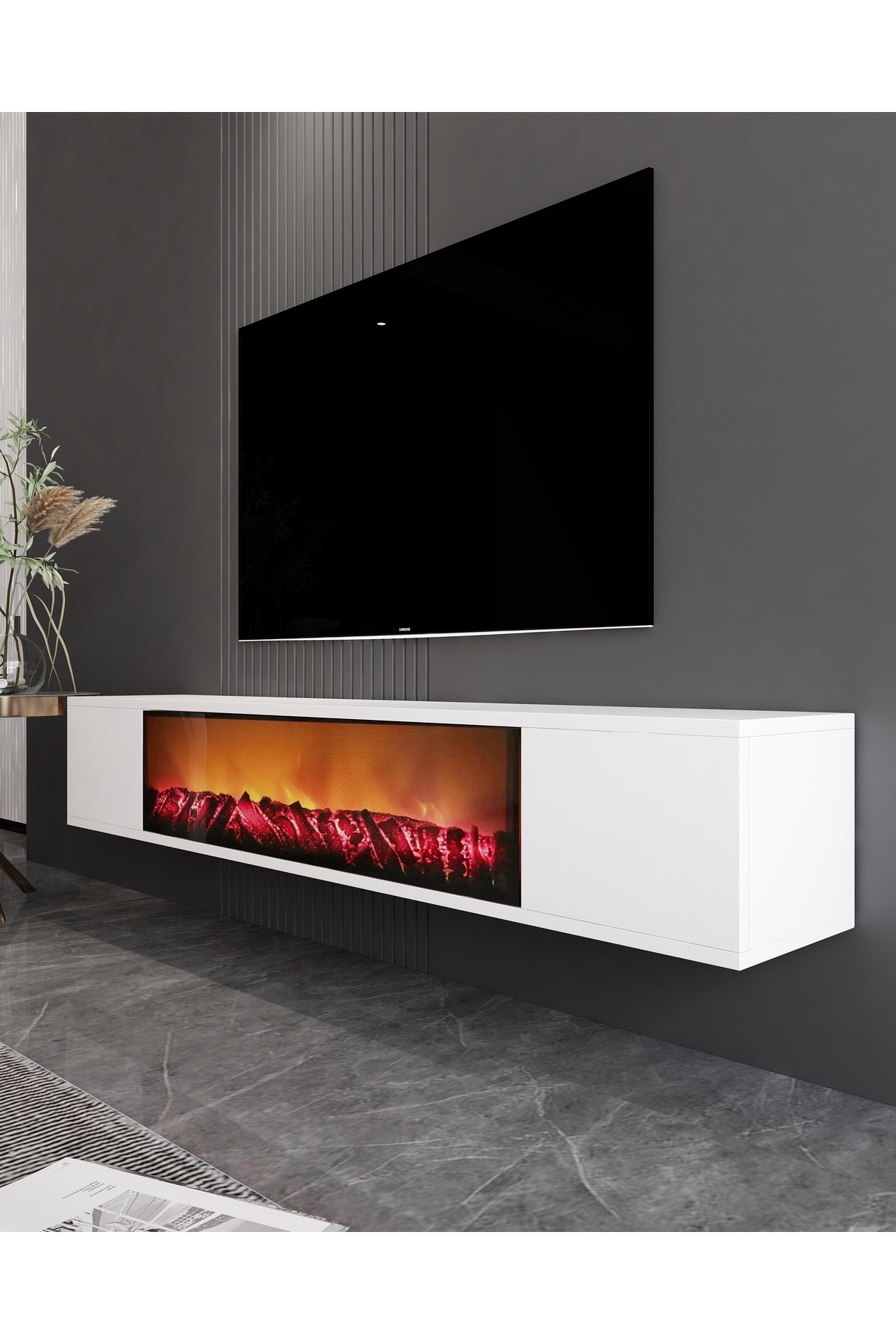 Parlact Şömineli (B) 150cm Duvara Montaj Tv Sehpası Beyaz Parlact Şömineli (B) 150cm Duvara Montaj Tv Sehpası Beyaz TV261CT تک سایز