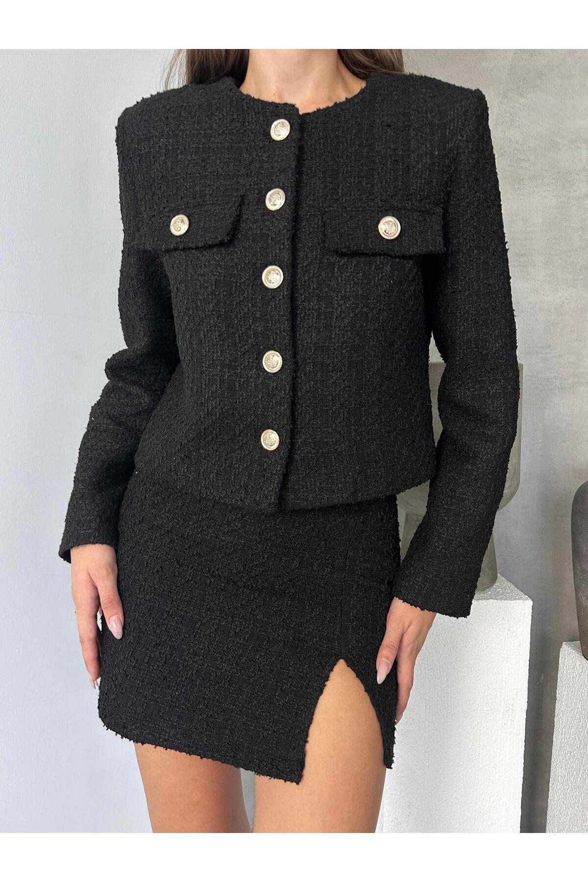 Bisiklet Yaka Dokulu Kadın Tüvit Ceket Bisiklet Yaka Dokulu Kadın Tüvit Ceket W4GM48Z8 44