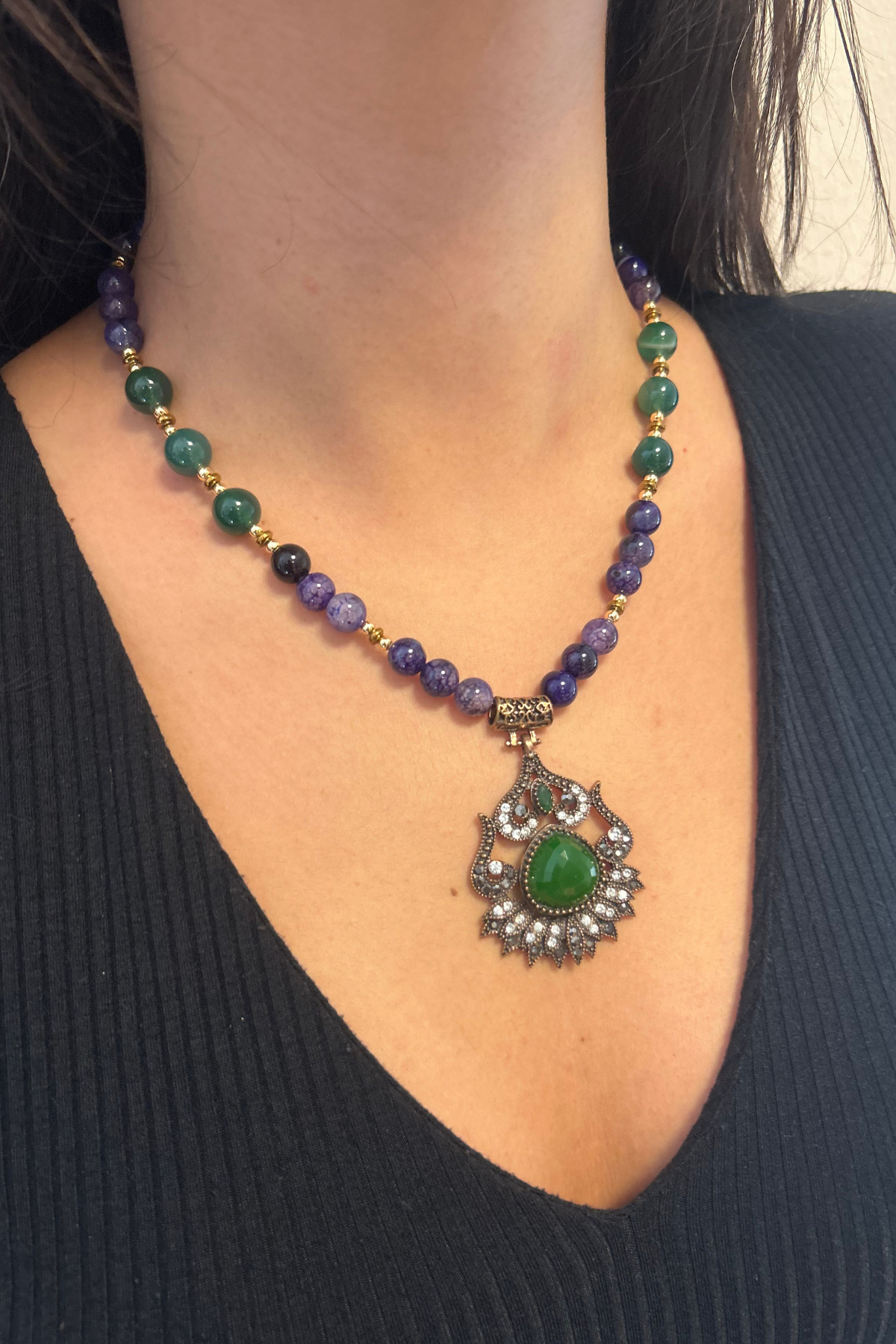 Ametist ve Aventurin Doğal Taş Kuyumcu İşi Elmas Montür Yeşim Doğaltaş Uç Kadın Kolye Ametist ve Aventurin Doğal Taş Kuyumcu İşi Elmas Montür Yeşim Doğaltaş Uç Kadın Kolye YDTK-0210 45 cm