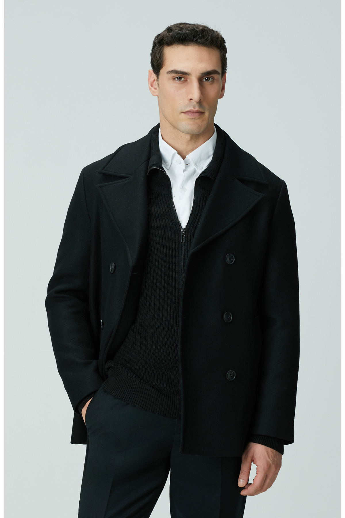 Desenli Yünlü Kaşmirli Kruvaze Kaban Desenli Yünlü Kaşmirli Kruvaze Kaban AK256330DS001 58