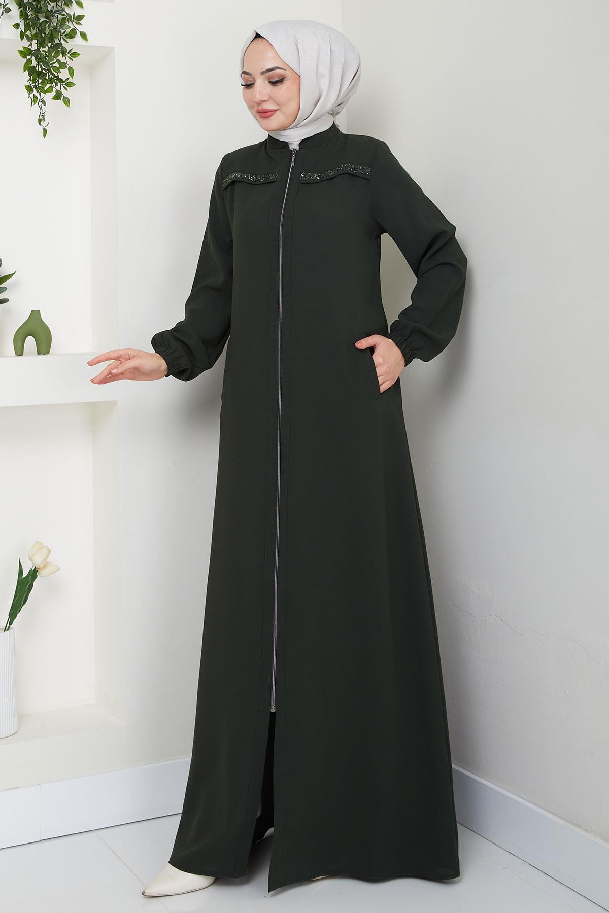 Gala Taş Detaylı Ferace Haki HM2313 Gala Taş Detaylı Ferace Haki HM2313 52