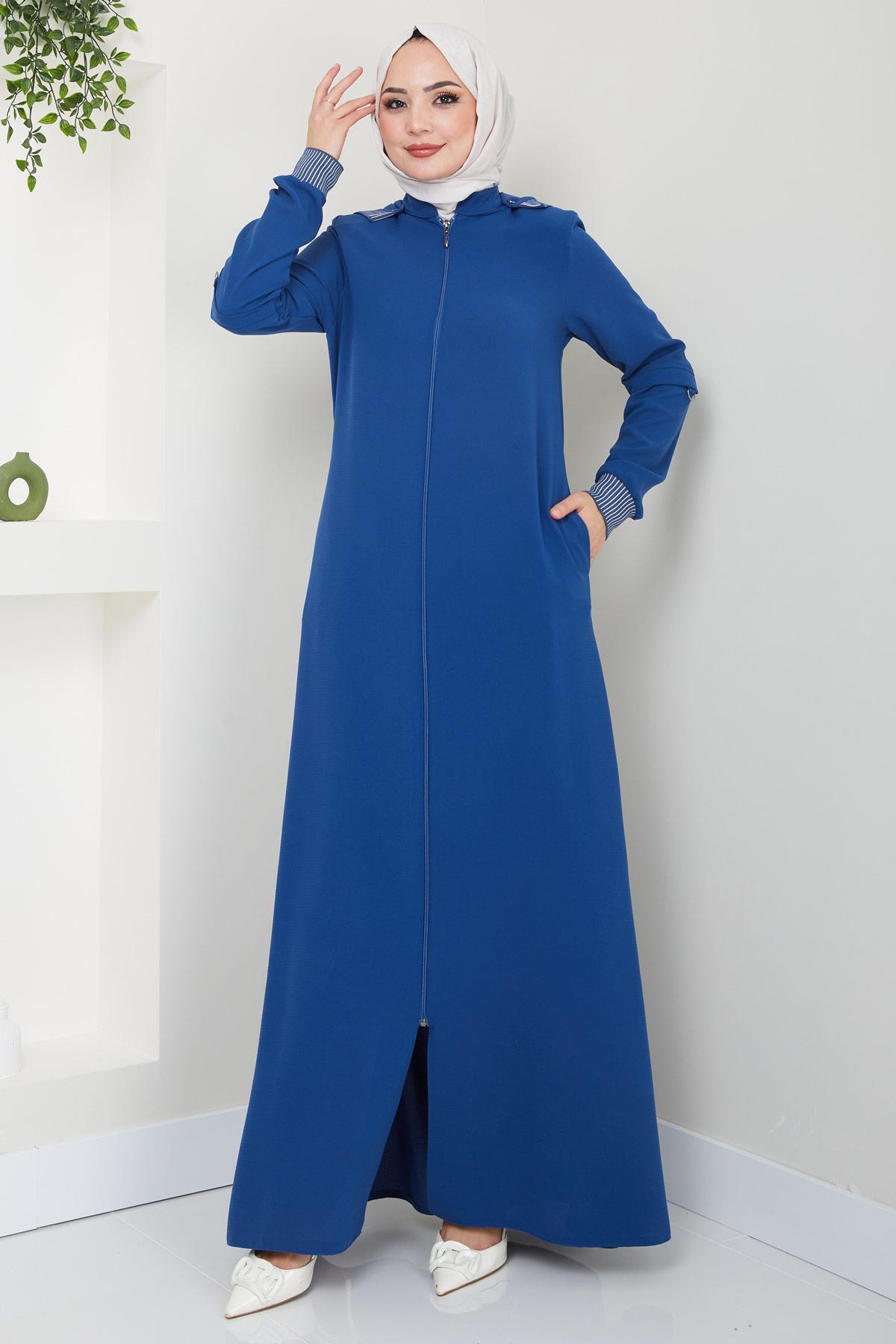 Gala Taş Detaylı Ferace İndigo HM2313 Gala Taş Detaylı Ferace İndigo HM2313 52