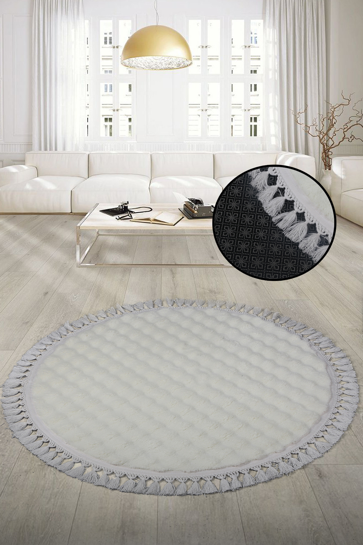 Gri Yuvarlak Düz Saçaklı Kaymaz Taban Peluş Halı Gri Yuvarlak Düz Saçaklı Kaymaz Taban Peluş Halı yuvarlakseri 150 x 150
