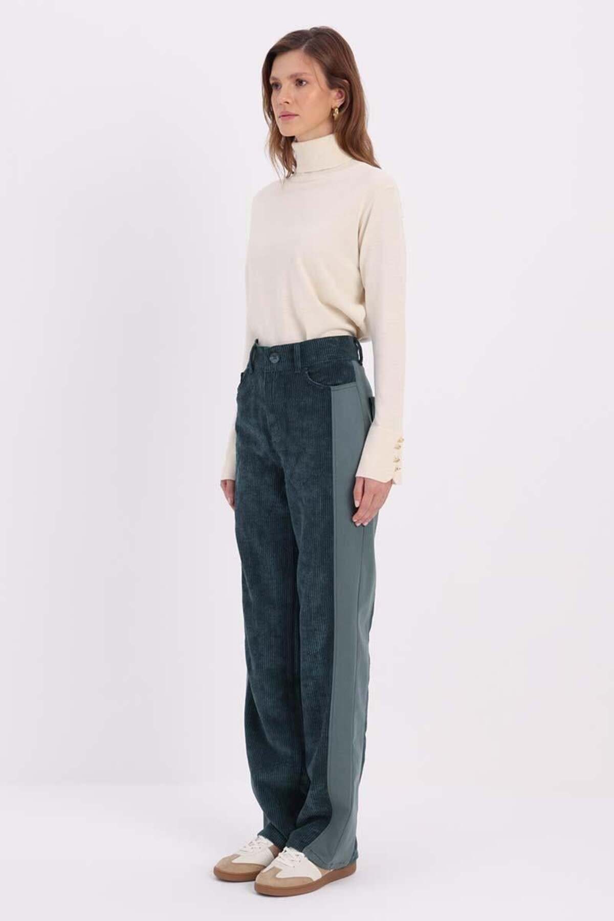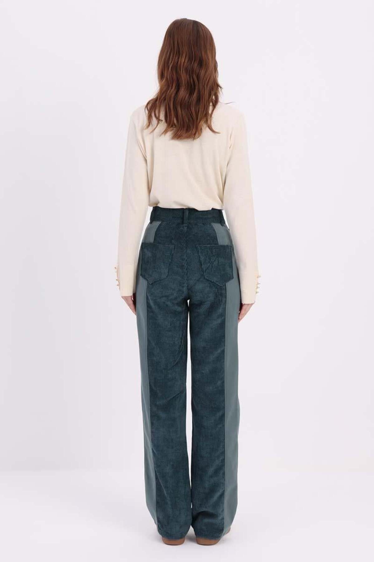 Petrol-Kumaş Mixli Pantolon Petrol-Kumaş Mixli Pantolon 24DW77063AL0 L