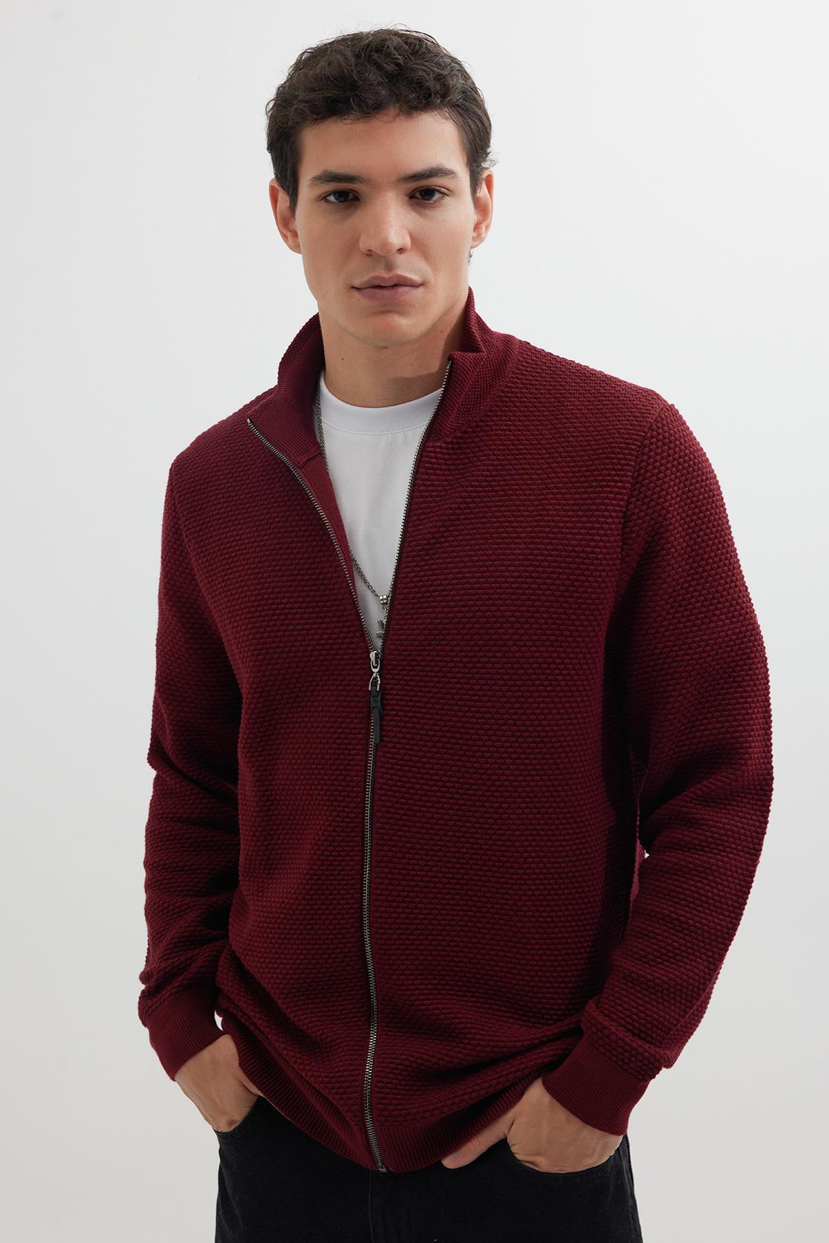 Erkek Slim Fit Dar Kesim Desenli Yarım Balıkçı Yaka Fermuarlı Kahverengi Hırka Erkek Slim Fit Dar Kesim Desenli Yarım Balıkçı Yaka Fermuarlı Kahverengi Hırka HR200007 2XL