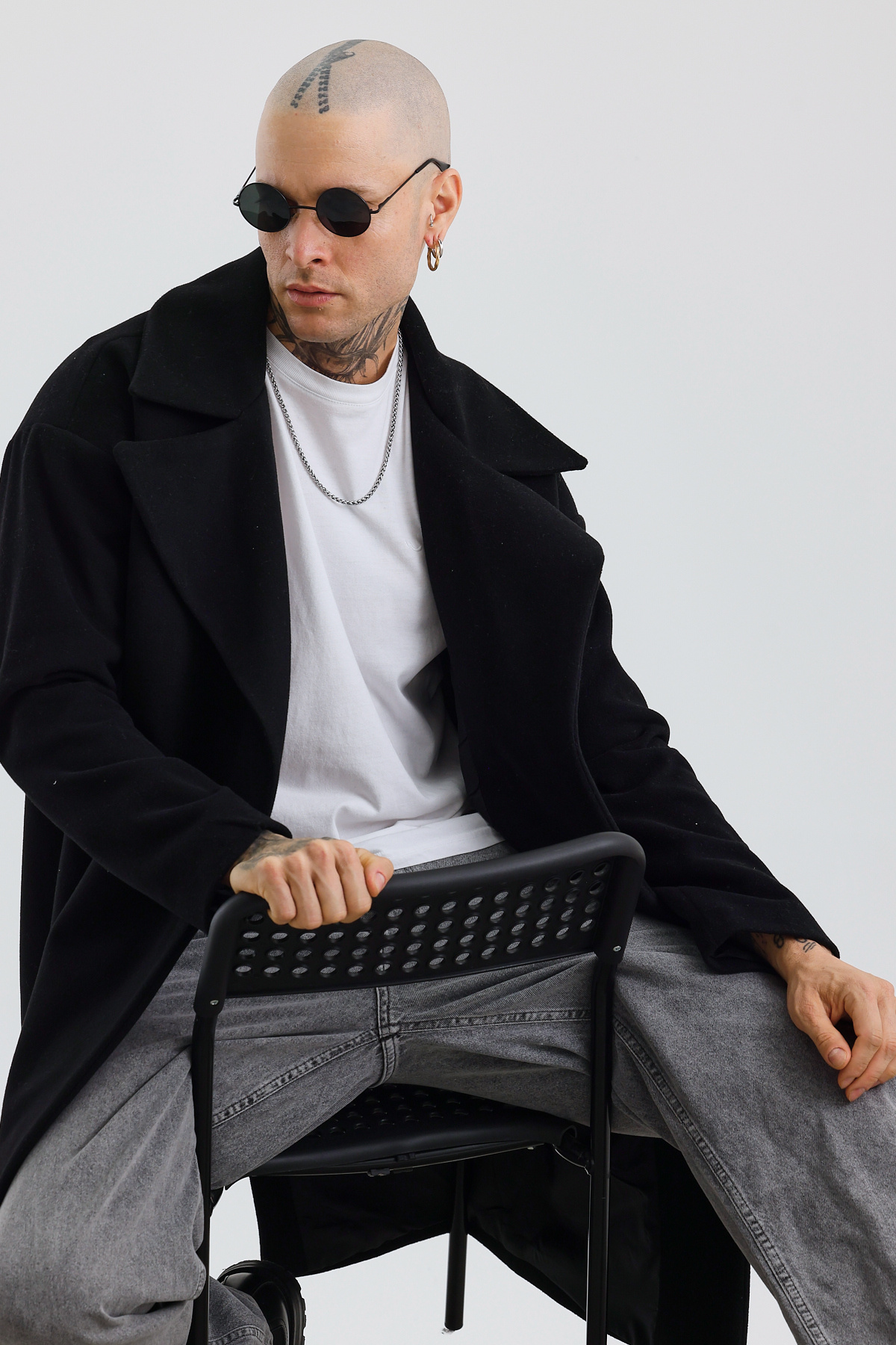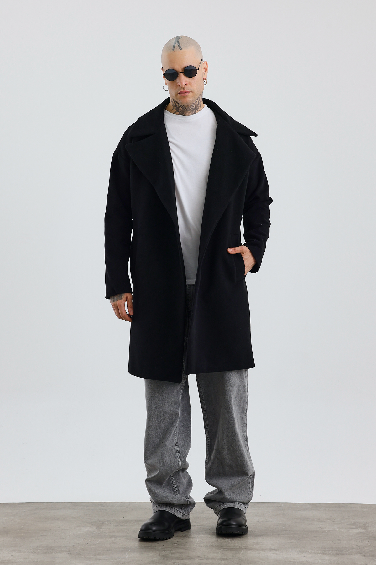 Oversize Rahat Kesim Uzun Kaşe Kaban siyah Oversize Rahat Kesim Uzun Kaşe Kaban siyah AF-K56123LNS L