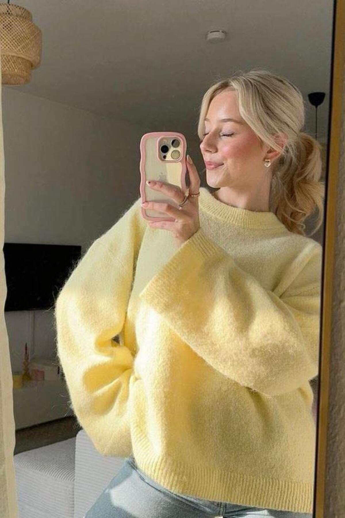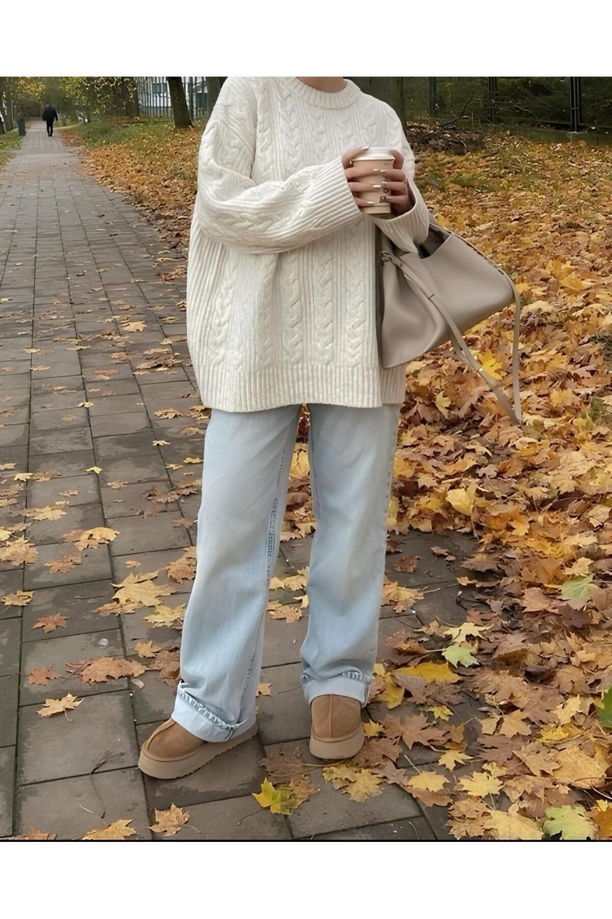Kadın Saç Örgü Desenli Oversize Uzun Kollu Triko Kazak Kadın Saç Örgü Desenli Oversize Uzun Kollu Triko Kazak JC10012501 L