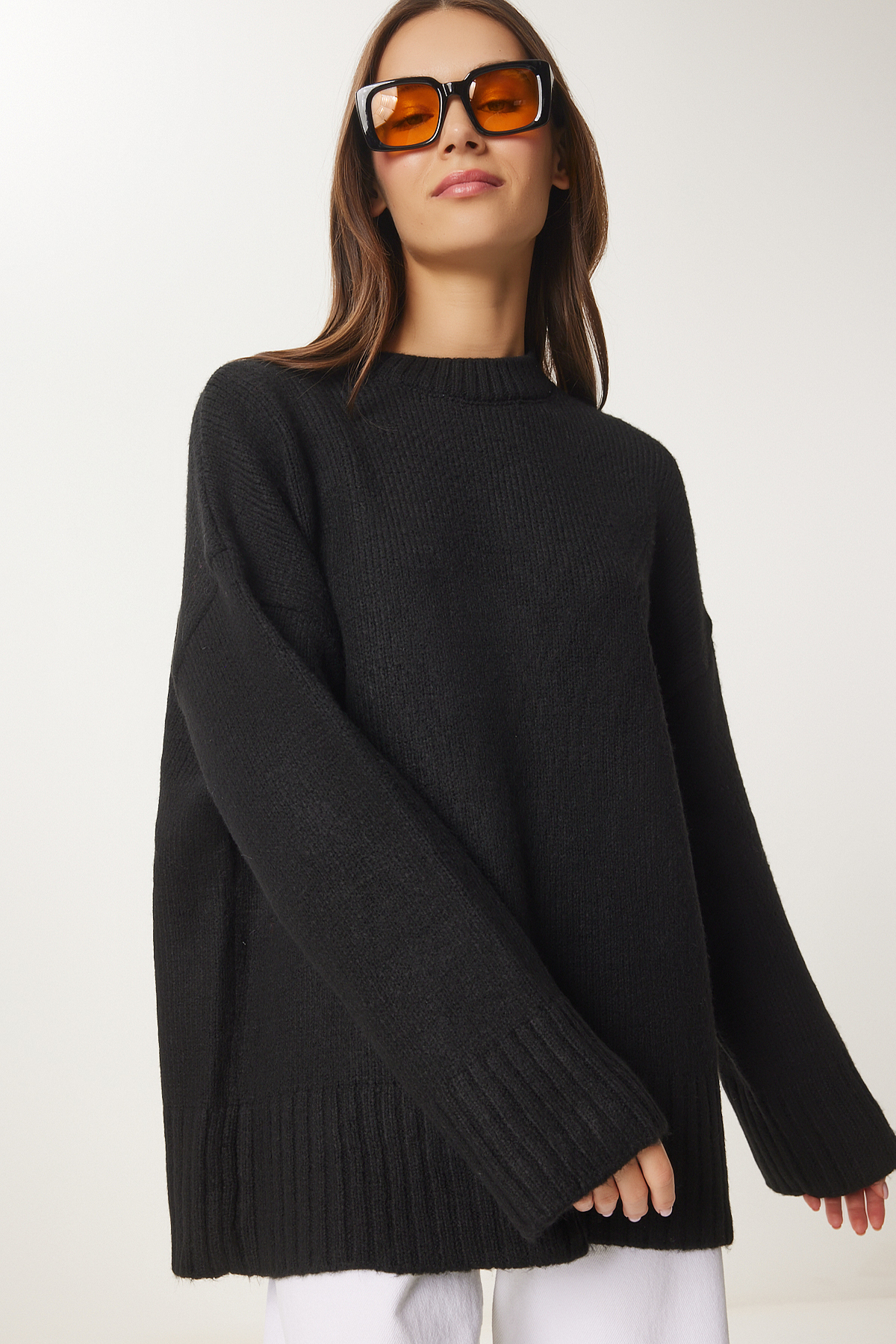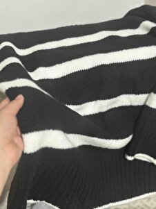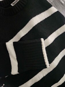 Kadın Siyah Ekru Bisiklet Yaka Çizgili Triko Kazak PF00107 Kadın Siyah Ekru Bisiklet Yaka Çizgili Triko Kazak PF00107 تک سایز