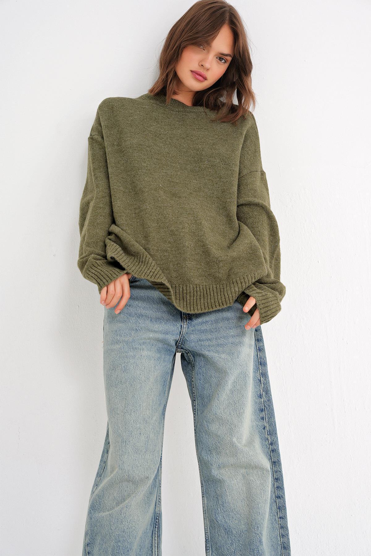 6913 Kadın Salaş Yumuşak Dokulu Oversize Triko Kazak Haki 6913 Kadın Salaş Yumuşak Dokulu Oversize Triko Kazak Haki K24KZK6913 Standart