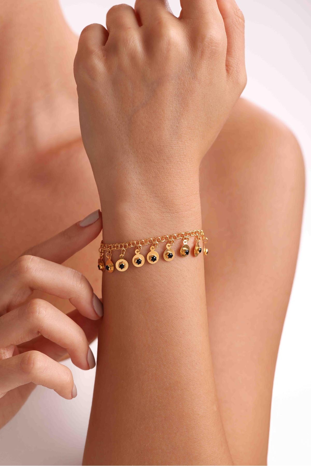 14 Ayar Altın Siyah Boncuklu Pullu Bileklik 14 Ayar Altın Siyah Boncuklu Pullu Bileklik 8684722005196 21 cm