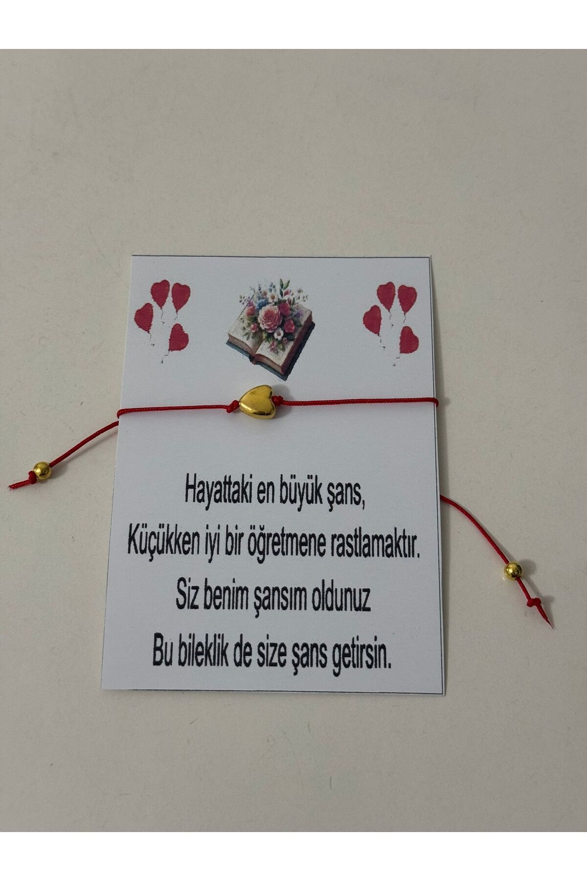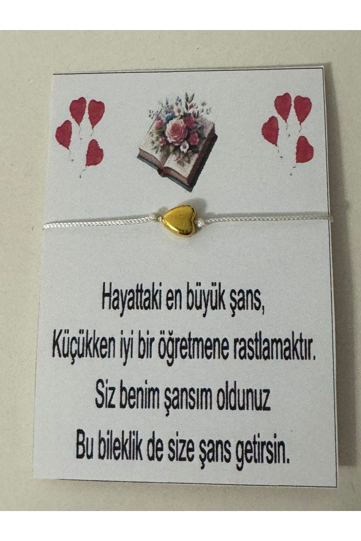 Öğretmene Kartlı Gold Kalpli Bileklik Hediye Öğretmene Kartlı Gold Kalpli Bileklik Hediye öğretmeneipbileklik Standart
