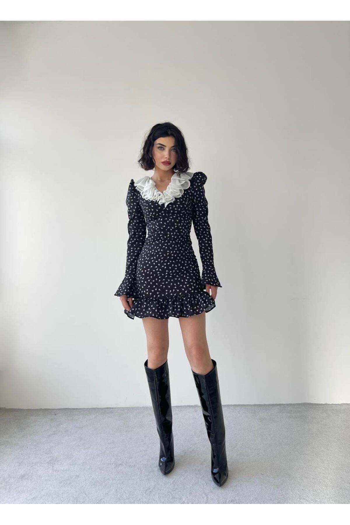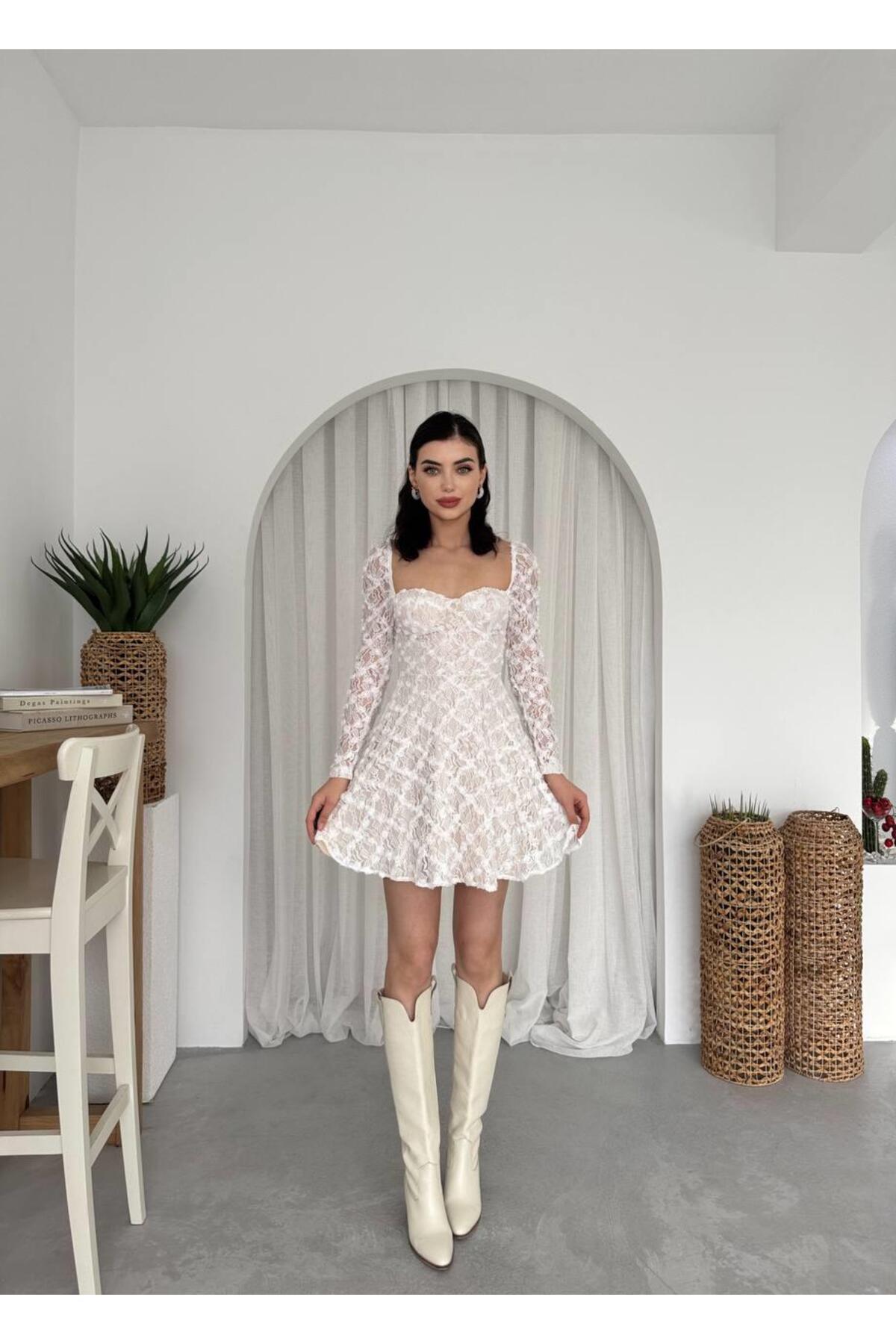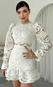 Tasarım Dantel Güpür Mini Elbise Tasarım Dantel Güpür Mini Elbise CON5975 L