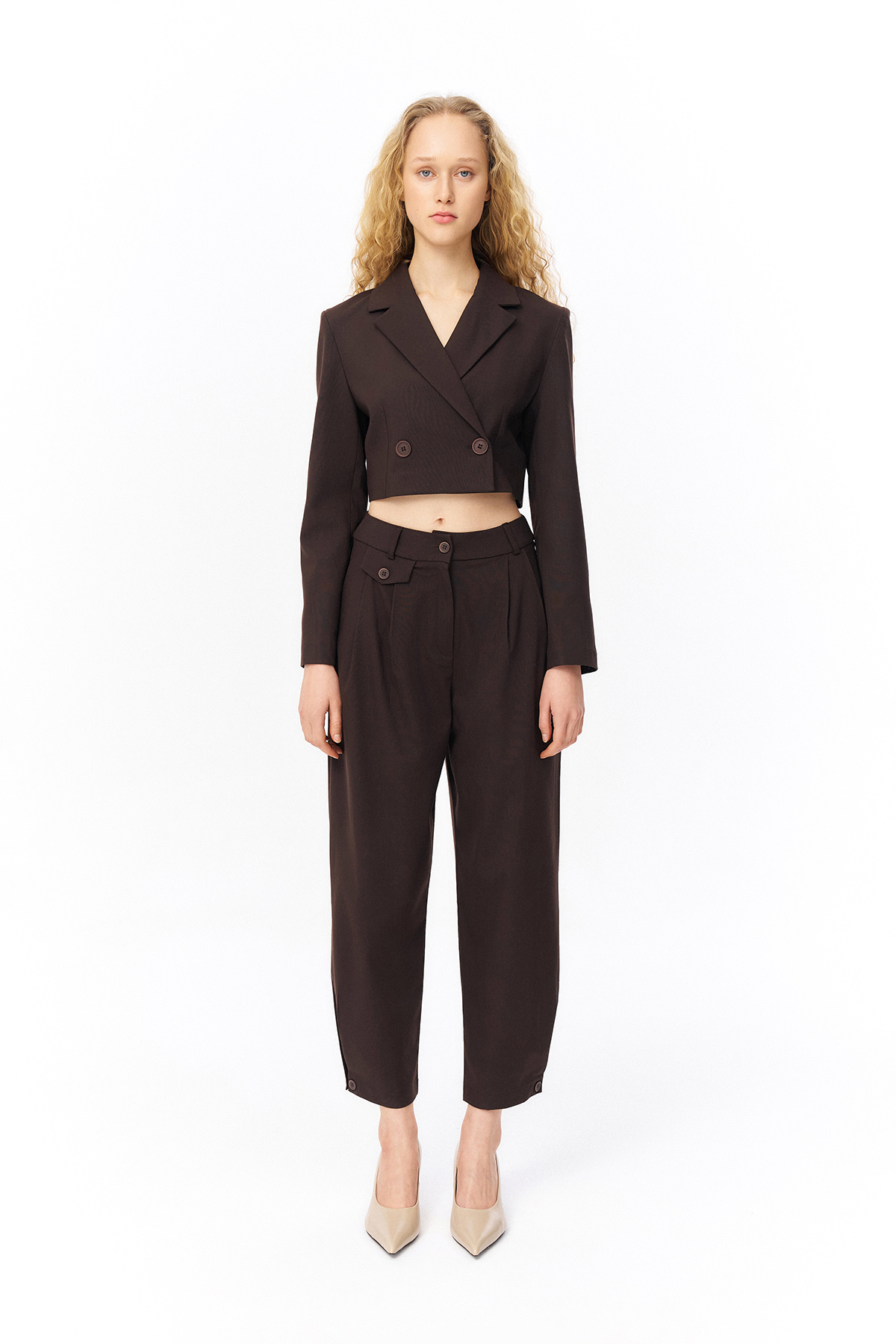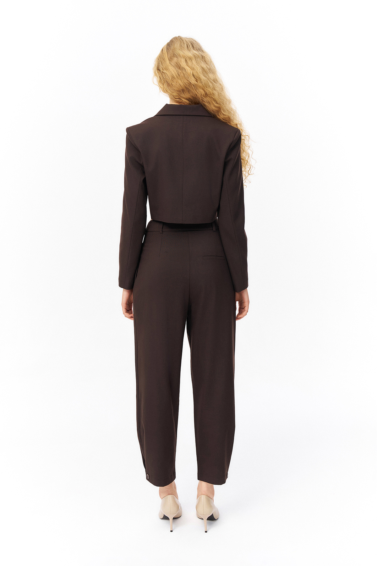 Vatka Detaylı Crop Blazer Ceket Kahverengi Vatka Detaylı Crop Blazer Ceket Kahverengi 24K51287 L