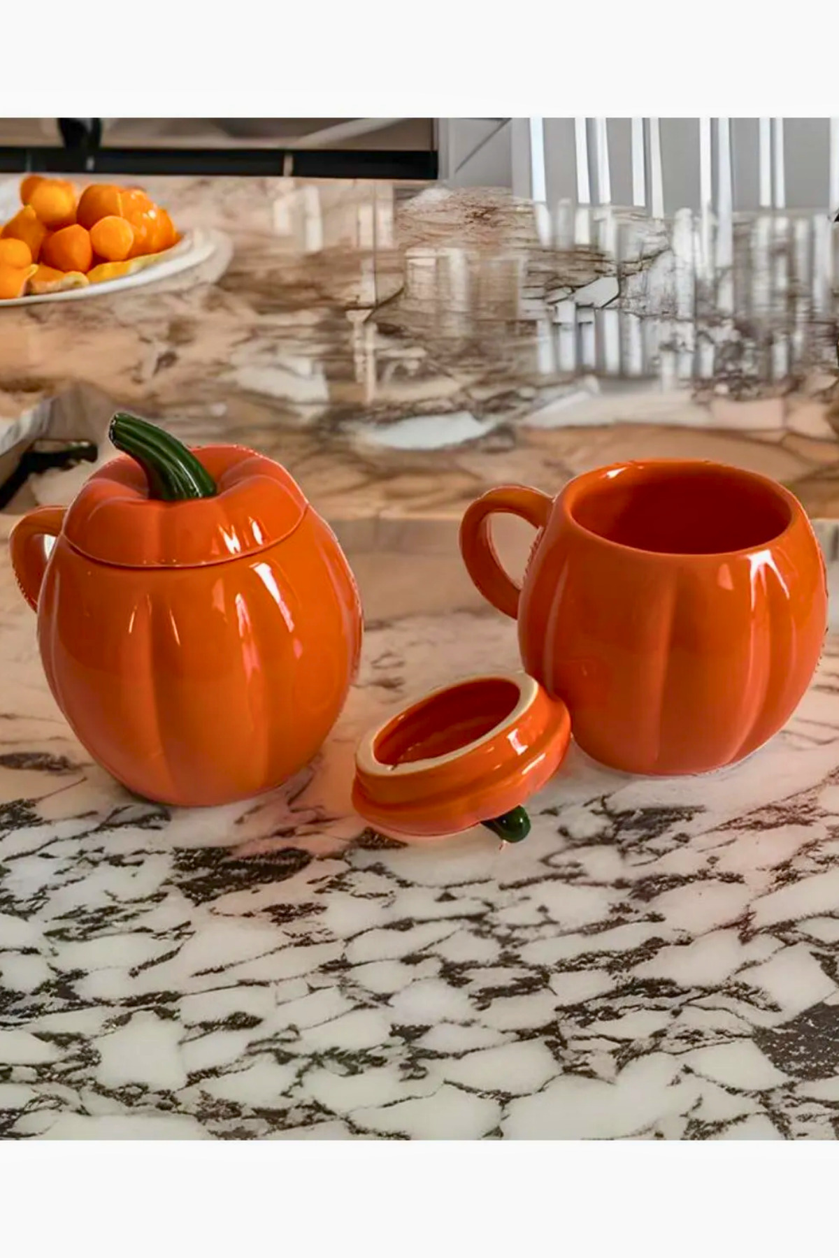 Tekli Kapaklı Bal Kabağı Tasarım Seramik Kupa Bardak, Pumpkin Serisi Seramik Kupa Bardak 225 ML Tekli Kapaklı Bal Kabağı Tasarım Seramik Kupa Bardak, Pumpkin Serisi Seramik Kupa Bardak 225 ML WT-KKKB تک سایز