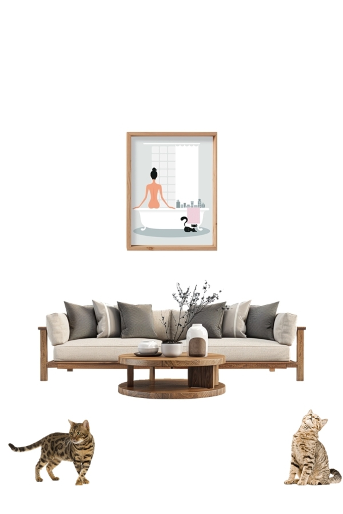 Banyo yapan kedi Ahşap Tablo Çerçeveli Ev Dekorasyon Duvar Poster Salon Odası Banyo yapan kedi Ahşap Tablo Çerçeveli Ev Dekorasyon Duvar Poster Salon Odası KK50 35 x 50