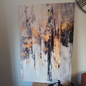 Sanatsal Altın ve Gri Soyut Tasarımlı Kanvas Tablo Sanatsal Altın ve Gri Soyut Tasarımlı Kanvas Tablo T-0716 90 x 130