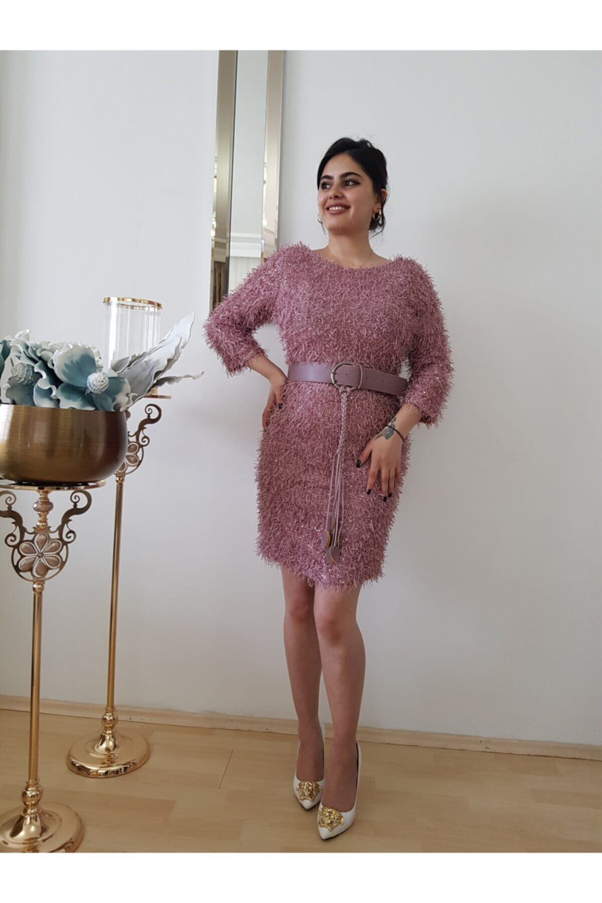 Yuvarlak Yaka Taş Renkli Elbise - Düz Renkli, V Dikiş Detaylı, Omzu Pileli, Uzun Kollu Midi Elbise Yuvarlak Yaka Taş Renkli Elbise - Düz Renkli, V Dikiş Detaylı, Omzu Pileli, Uzun Kollu Midi Elbise MM-1015TAS 2XL/3XL