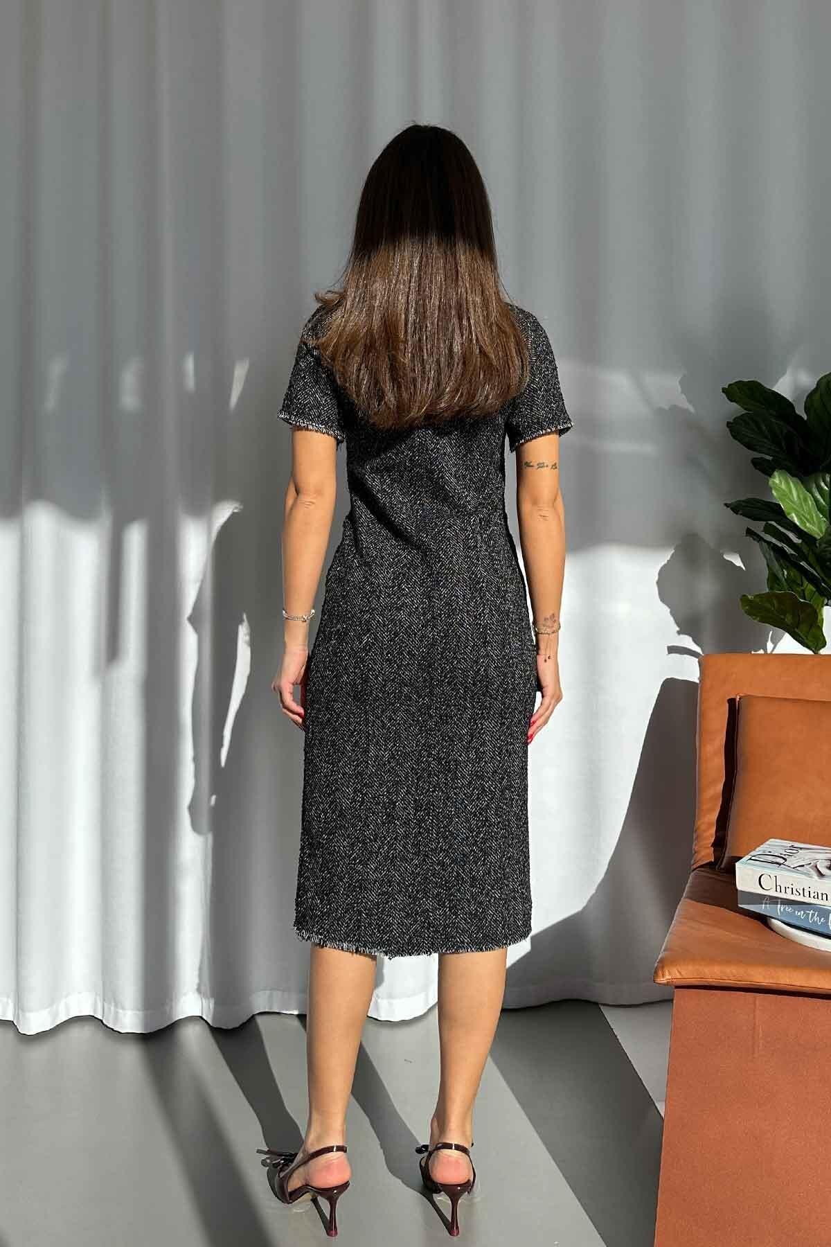 Tüvit Dokulu Midi Kalem Elbise - Antrasit Tüvit Dokulu Midi Kalem Elbise - Antrasit 3M-3419 L
