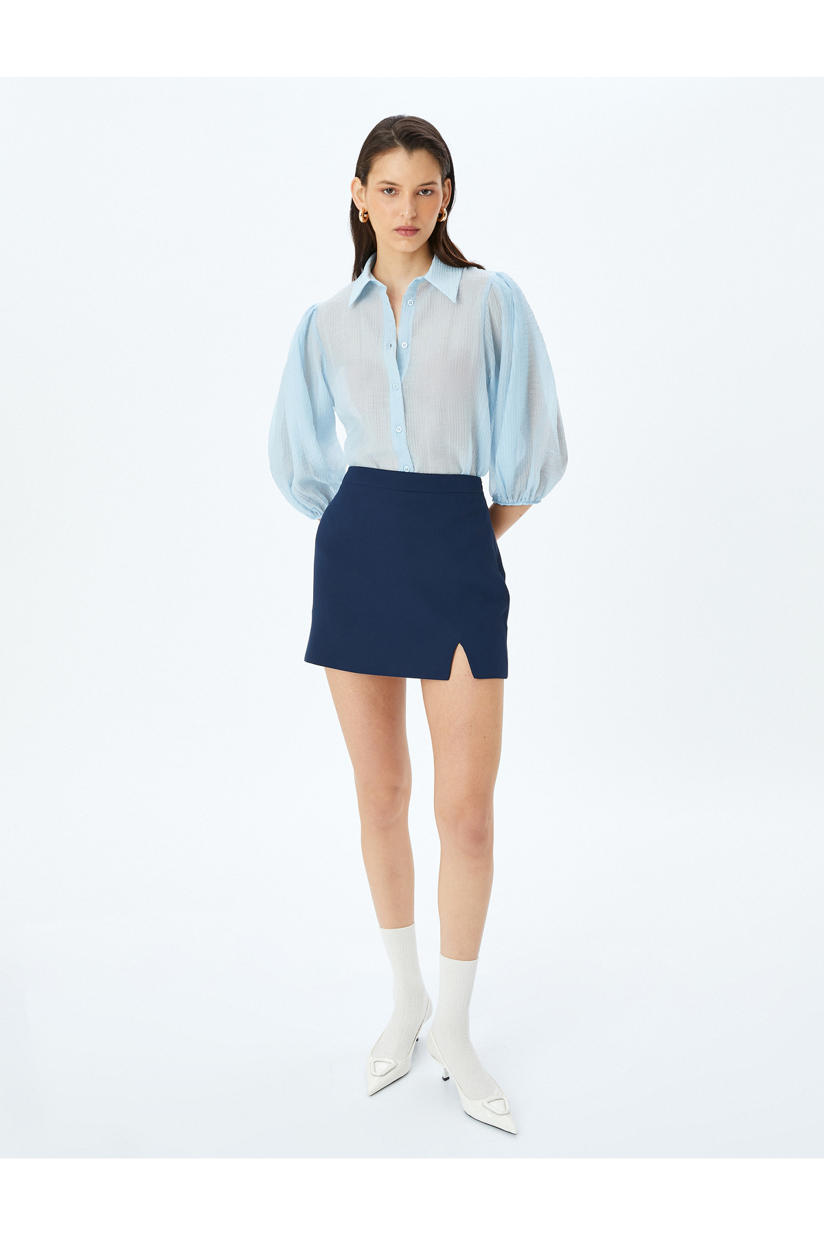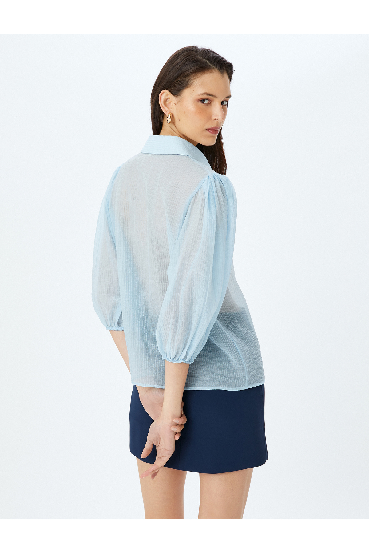 Dokulu 3/4 Balon Kollu Yarı Transparan Gömlek Dokulu 3/4 Balon Kollu Yarı Transparan Gömlek 5SAK60043PW 42