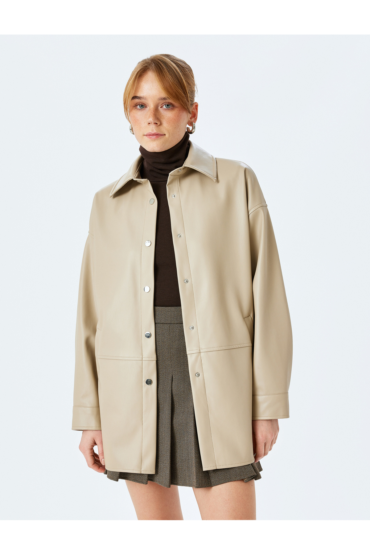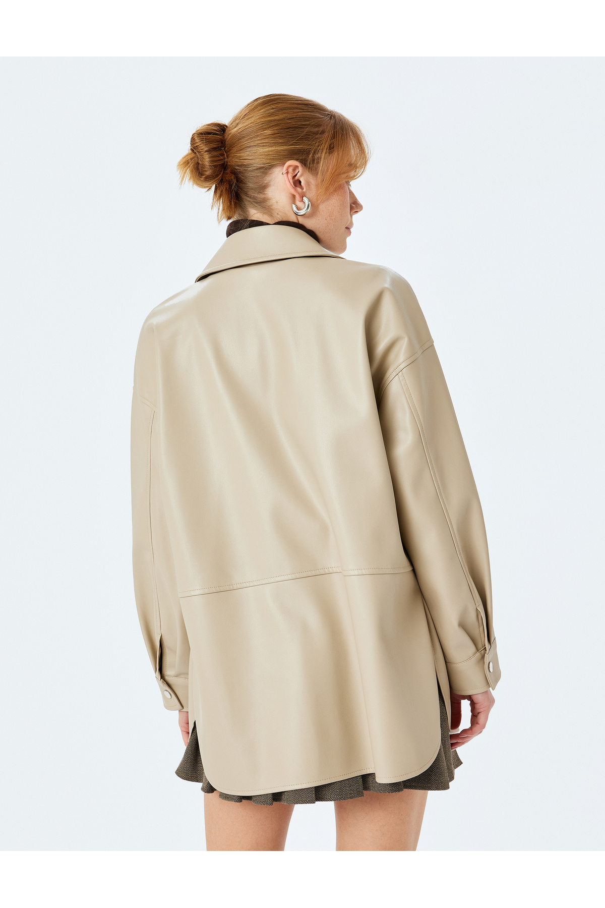 Çıtçıt Düğme Detaylı Uzun Kollu Cepli Suni Deri Gömlek Ceket Çıtçıt Düğme Detaylı Uzun Kollu Cepli Suni Deri Gömlek Ceket 5SAK20076EW 42