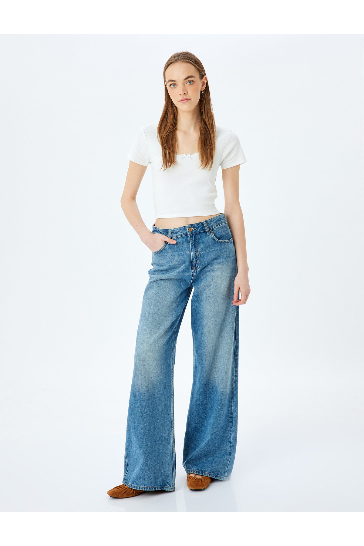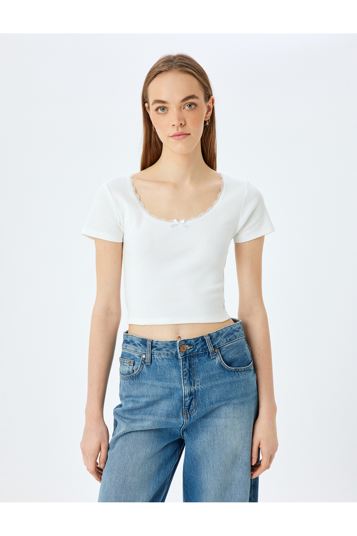Fiyonklu Crop U Yaka Slim Fit Kısa Kollu Tişört Fiyonklu Crop U Yaka Slim Fit Kısa Kollu Tişört 5SAL10194IK XL