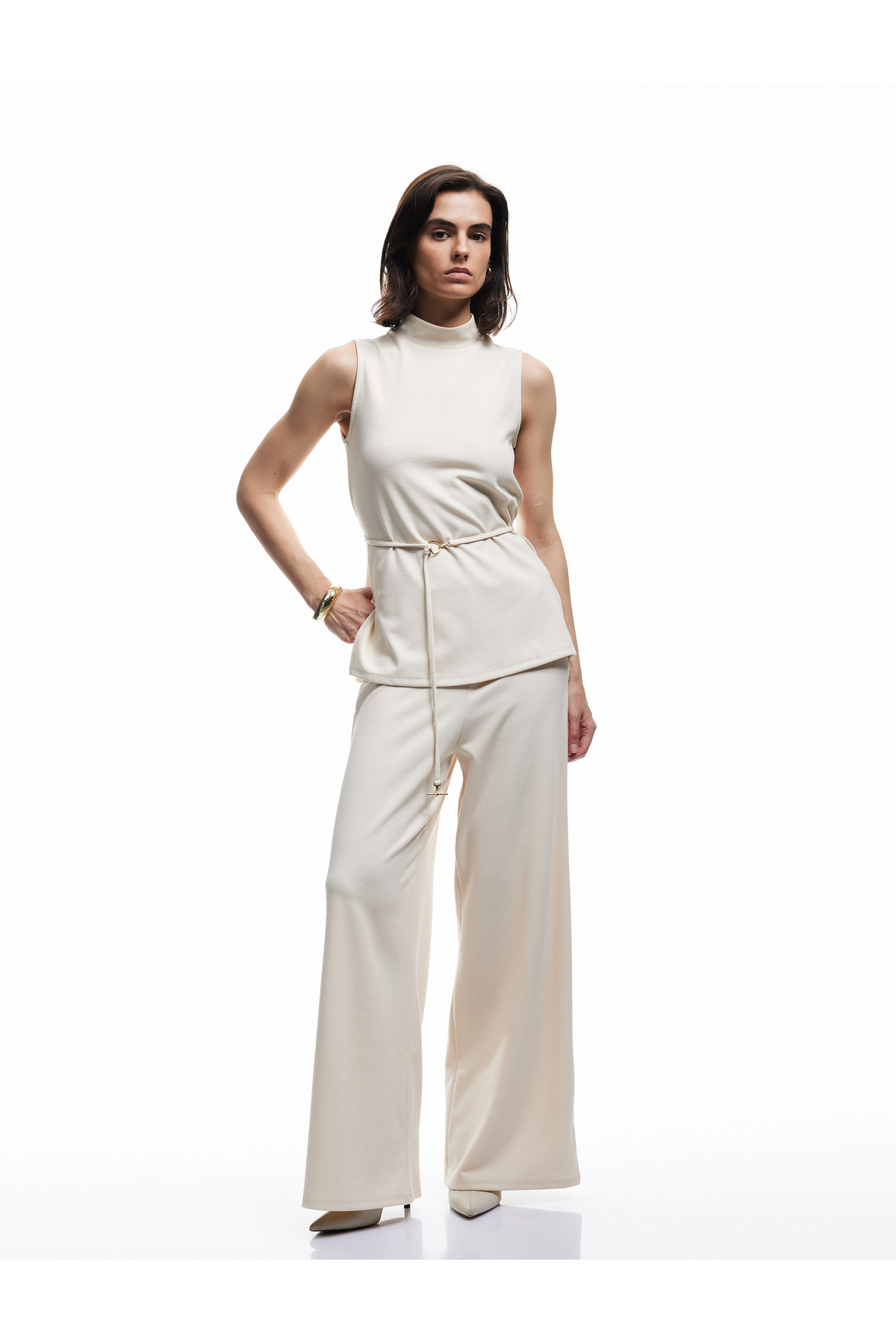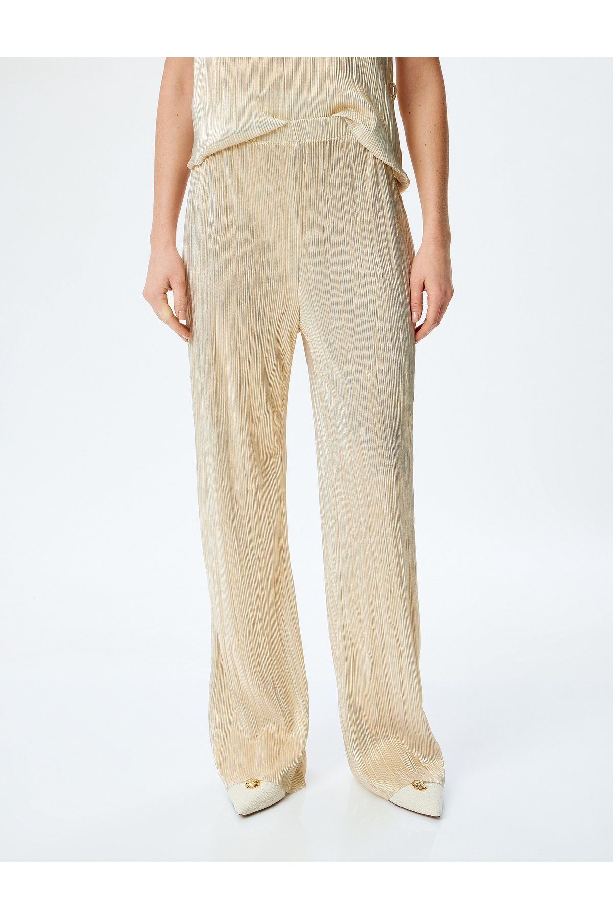 Beli Bağlamalı Yüksek Bel Parlak Piliseli Palazzo Pantolon Beli Bağlamalı Yüksek Bel Parlak Piliseli Palazzo Pantolon 5SAK40017UK 2XL