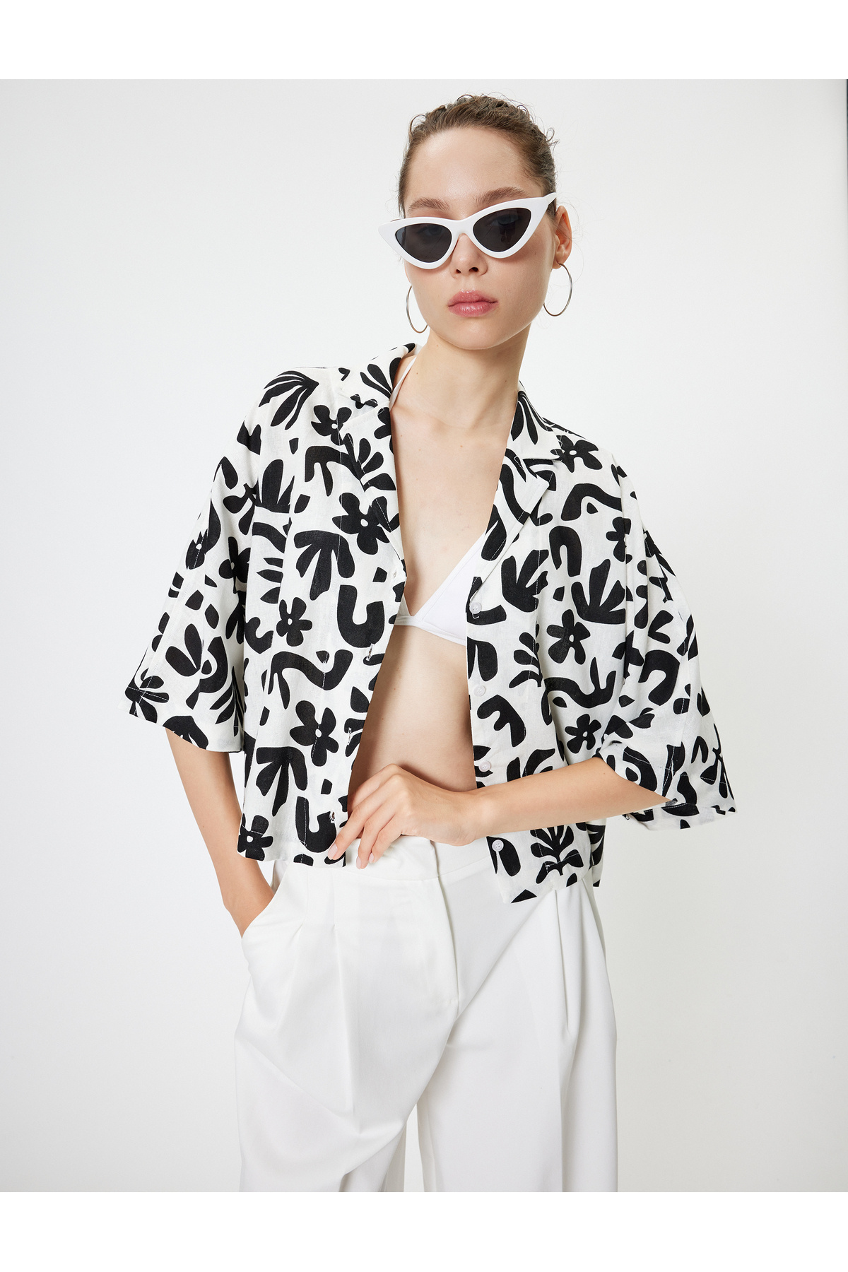Balon Kol Çiçekli Düğmeli Crop Oversize Gömlek Balon Kol Çiçekli Düğmeli Crop Oversize Gömlek 5SAL60067IW 42