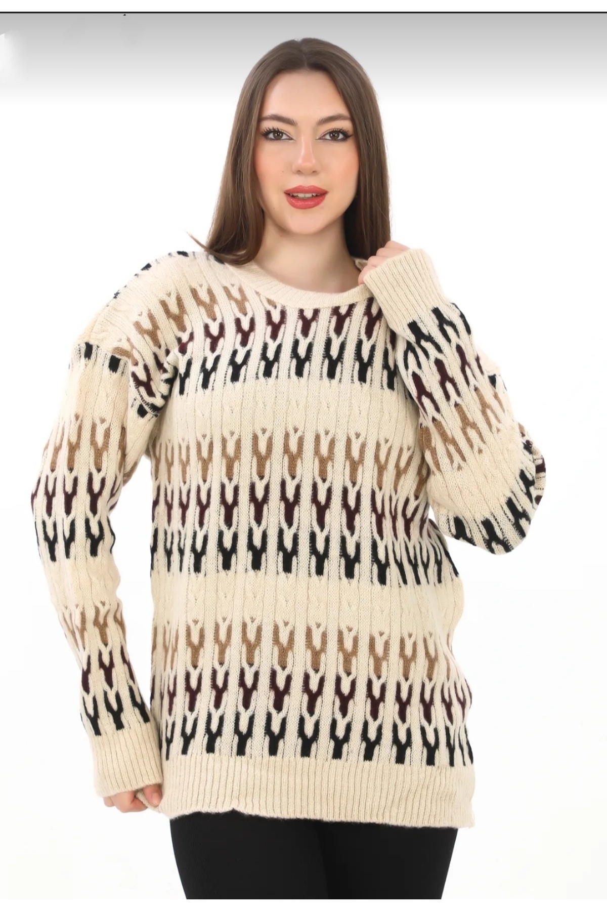 Oversize Örme Detaylı Balıkçı Yaka Yumuşak Triko Kazak Oversize Örme Detaylı Balıkçı Yaka Yumuşak Triko Kazak AEGYSRDXFGHKJLK Standart