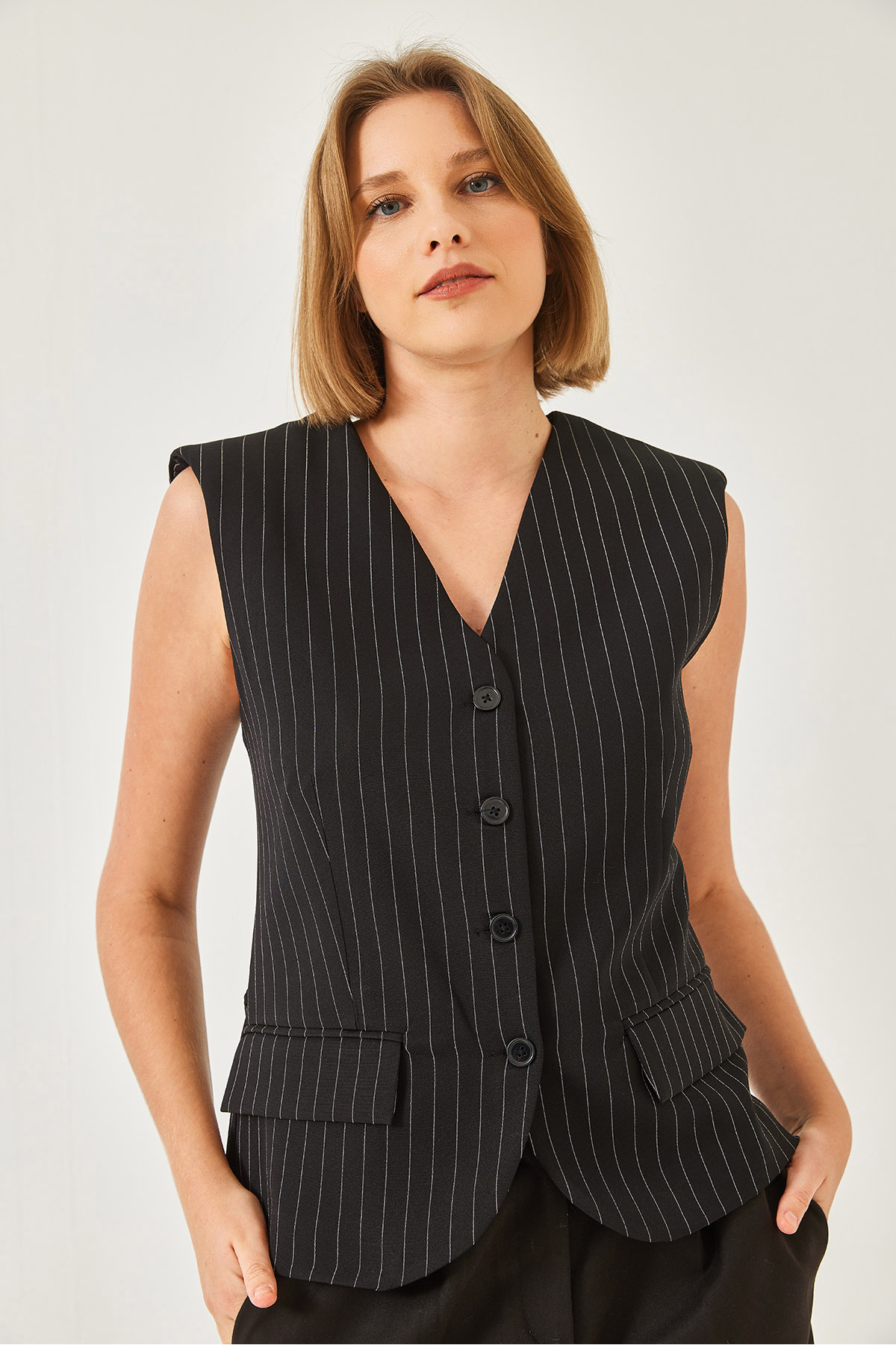 Kadın Düğmeli Çizgili V Yaka Yelek 60342 60271014 Kadın Düğmeli Çizgili V Yaka Yelek 60342 60271014 40