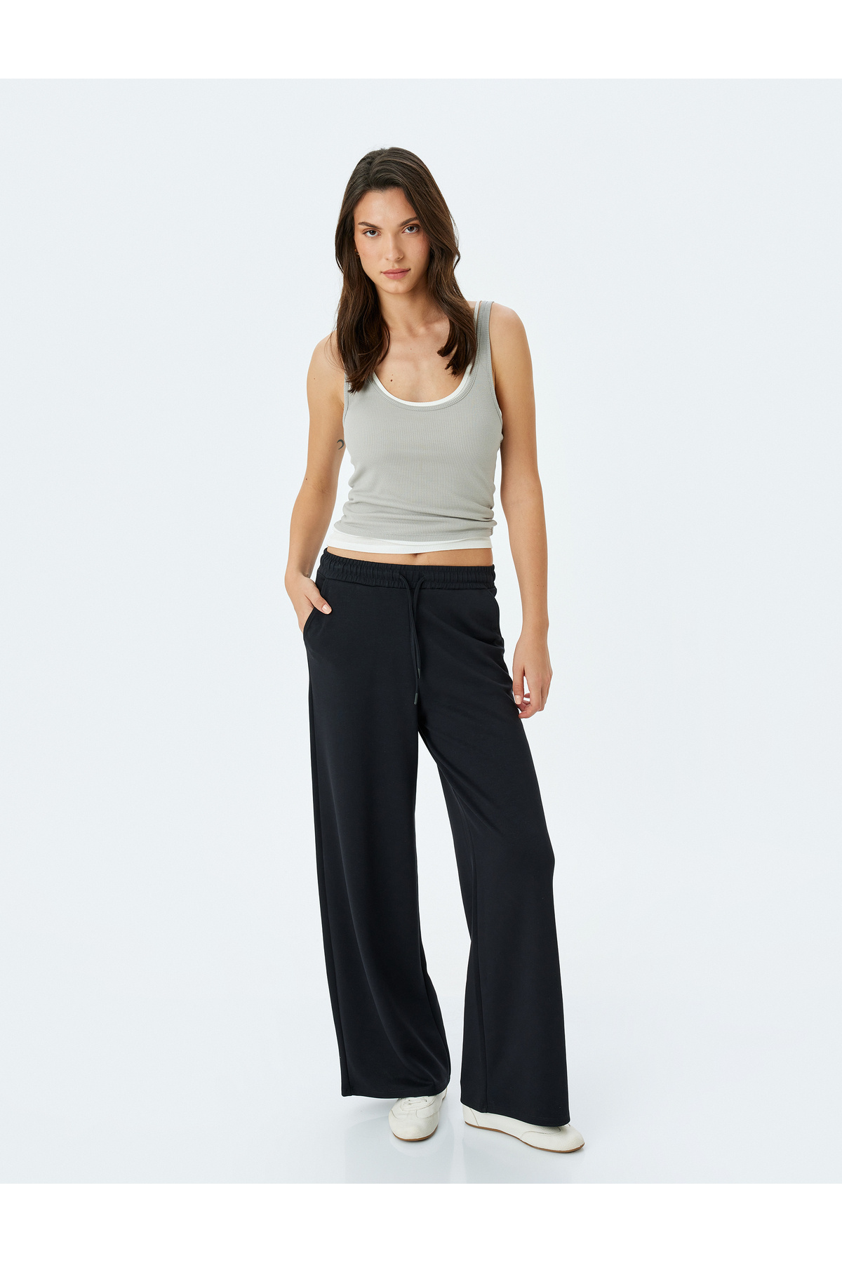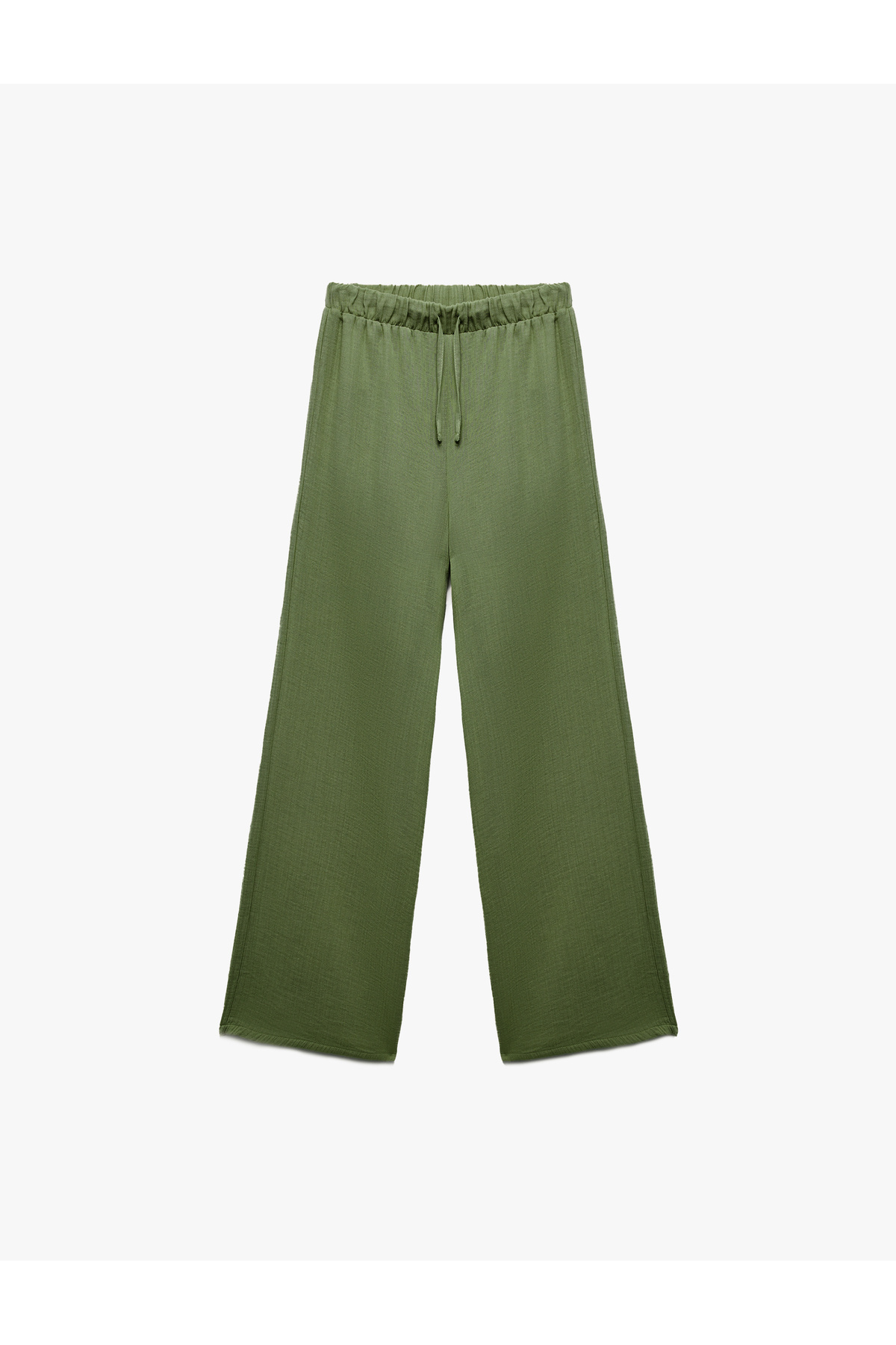 Beli Bağcıklı Dokulu Yüksek Bel Geniş Paça Pantolon Beli Bağcıklı Dokulu Yüksek Bel Geniş Paça Pantolon 5SAK40006UK Standart