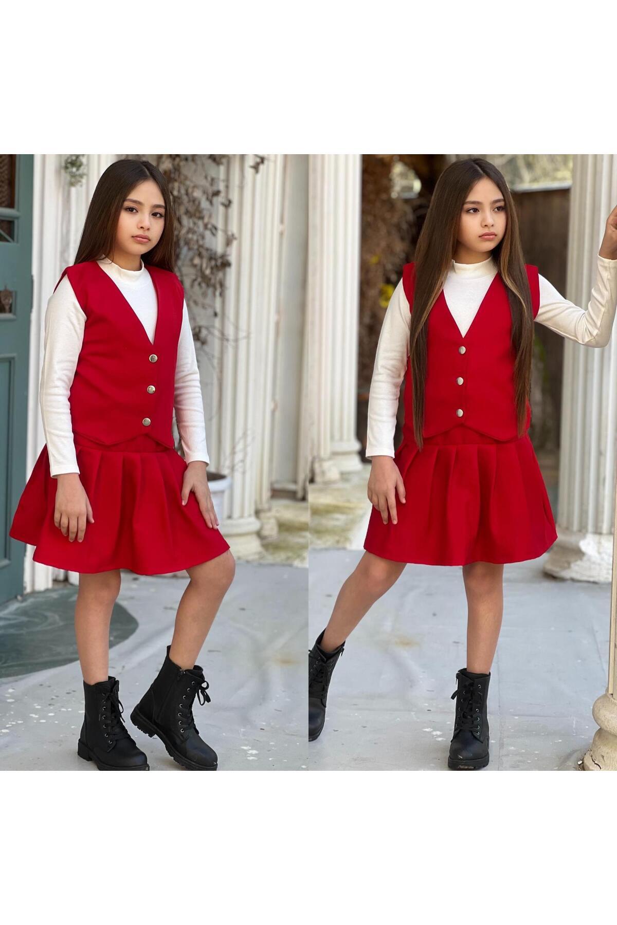Kız Çocuk Balıkçı Yaka Kazak V Yaka Yelek Kemerli Pliseli Yeşil Etekli Takım Kız Çocuk Balıkçı Yaka Kazak V Yaka Yelek Kemerli Pliseli Yeşil Etekli Takım 2250901005 13-14 Yaş