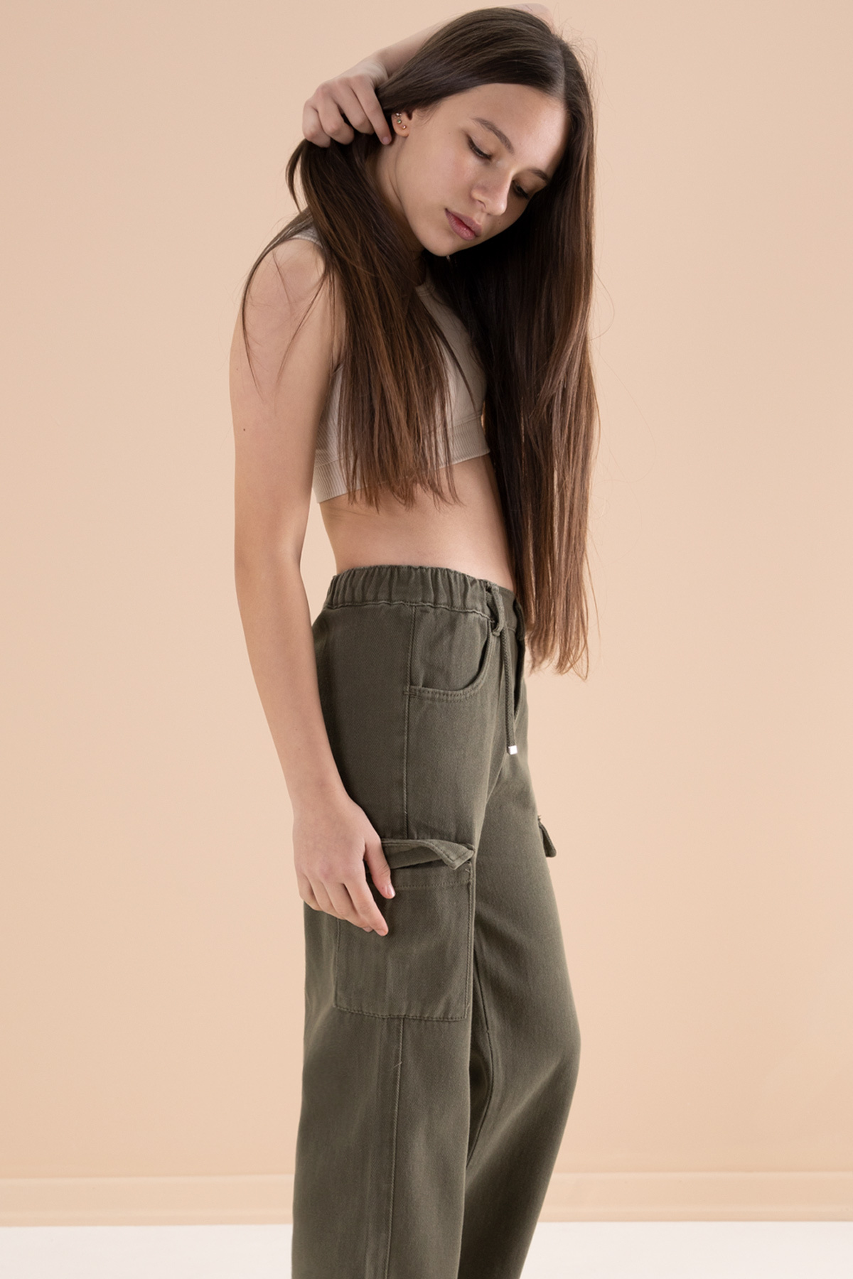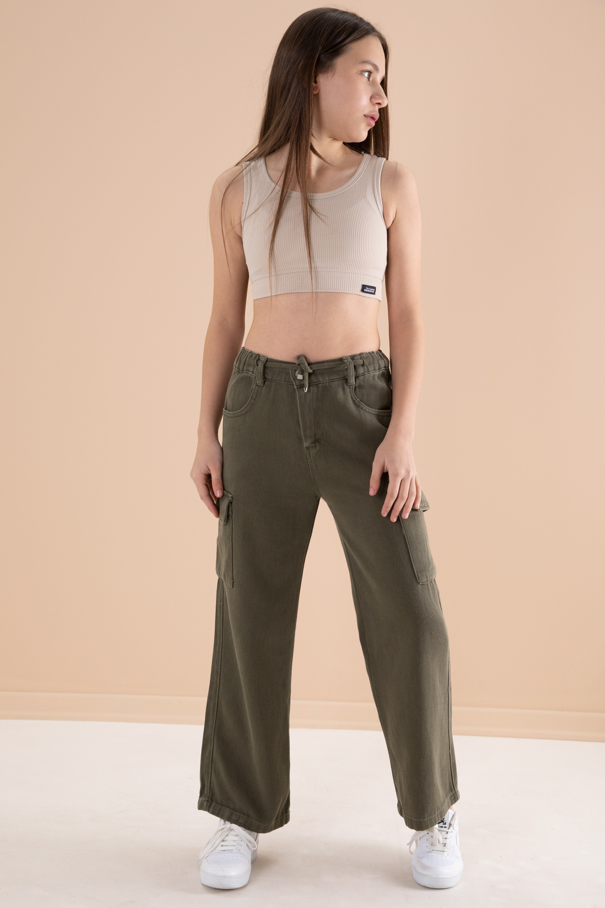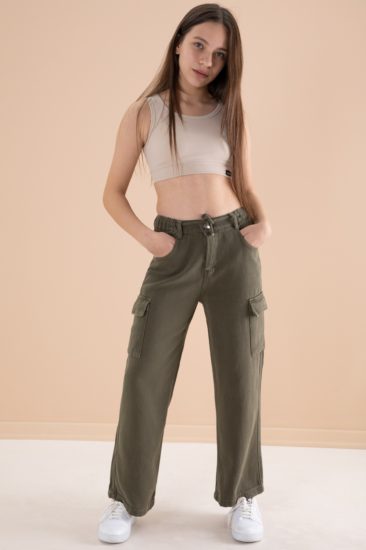 Haki Geniş Paça Beli Bağcıklı Kız Çocuk Kargo Cepli Jean Pantolon 20134 Haki Geniş Paça Beli Bağcıklı Kız Çocuk Kargo Cepli Jean Pantolon 20134 GRPCM00020132 16-17 Yaş