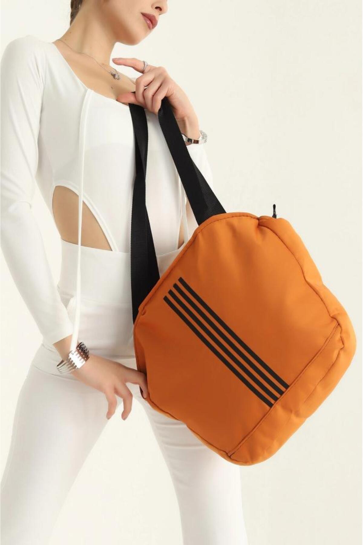 turuncu Yumuşak Bez Kumaş Kol Ve Omuz Çantası ağzı fermuarlı kadın çanta çizgili turuncu Yumuşak Bez Kumaş Kol Ve Omuz Çantası ağzı fermuarlı kadın çanta çizgili تک سایز