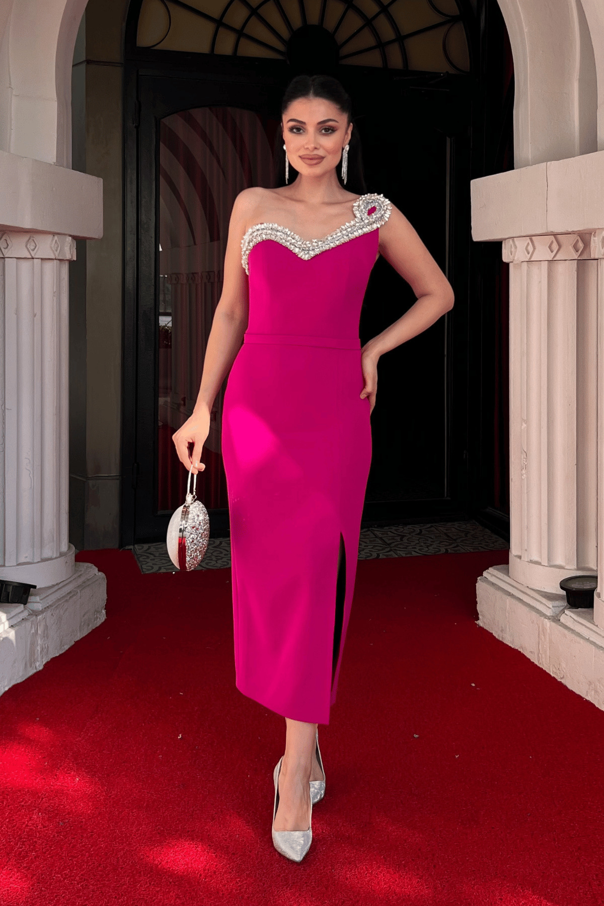 Atlas Kumaş Gül Detaylı Straplez Kalem Elbise - SAKS MAVİ Atlas Kumaş Gül Detaylı Straplez Kalem Elbise - SAKS MAVİ GYM-00103 42
